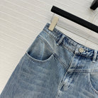 CC 25 Embroidered Midi Skirt Blue Denim Cotton
