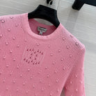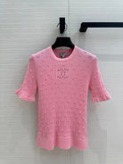 CC 25 Hollow Knitted T-shirt Pink cotton