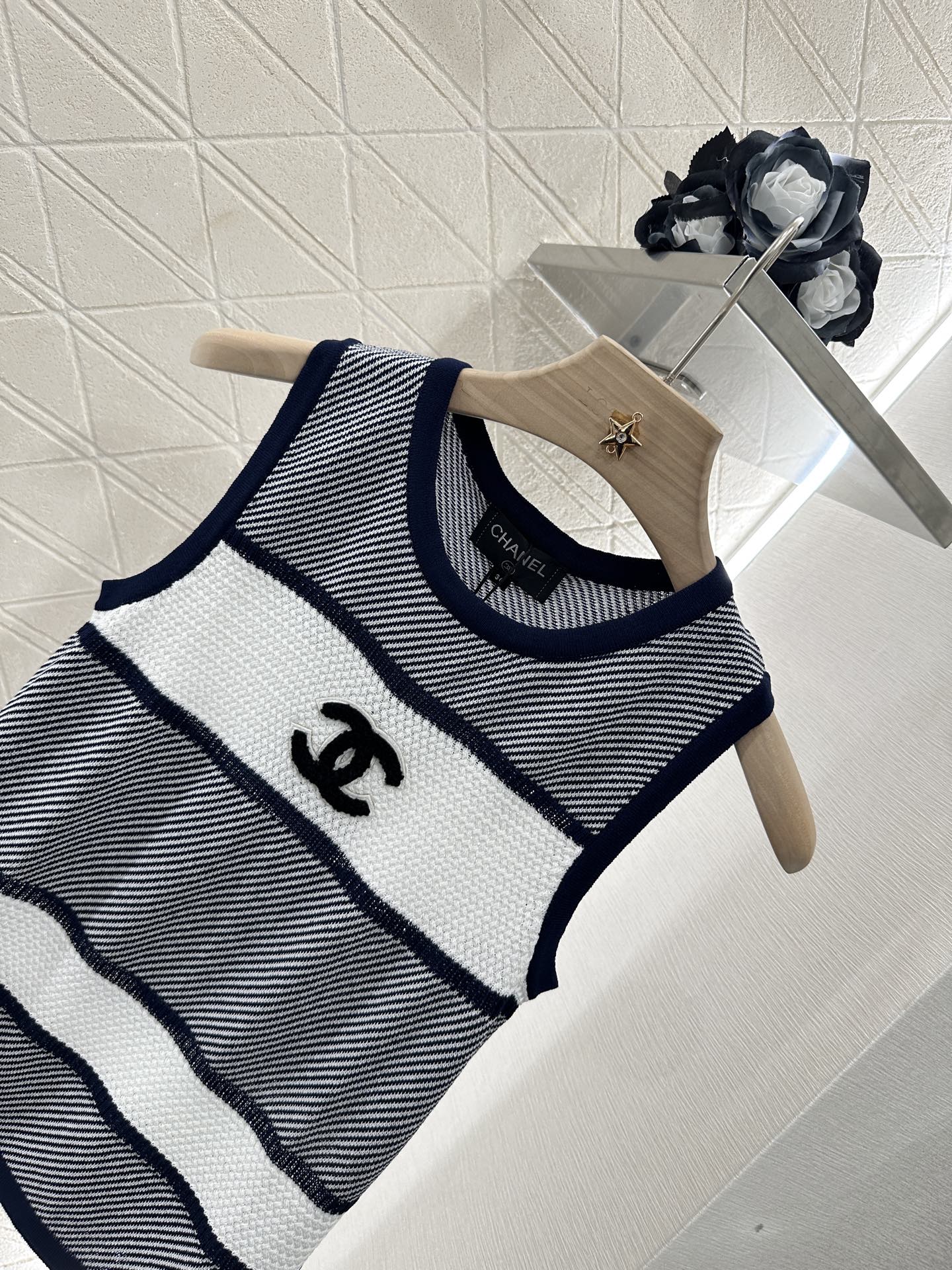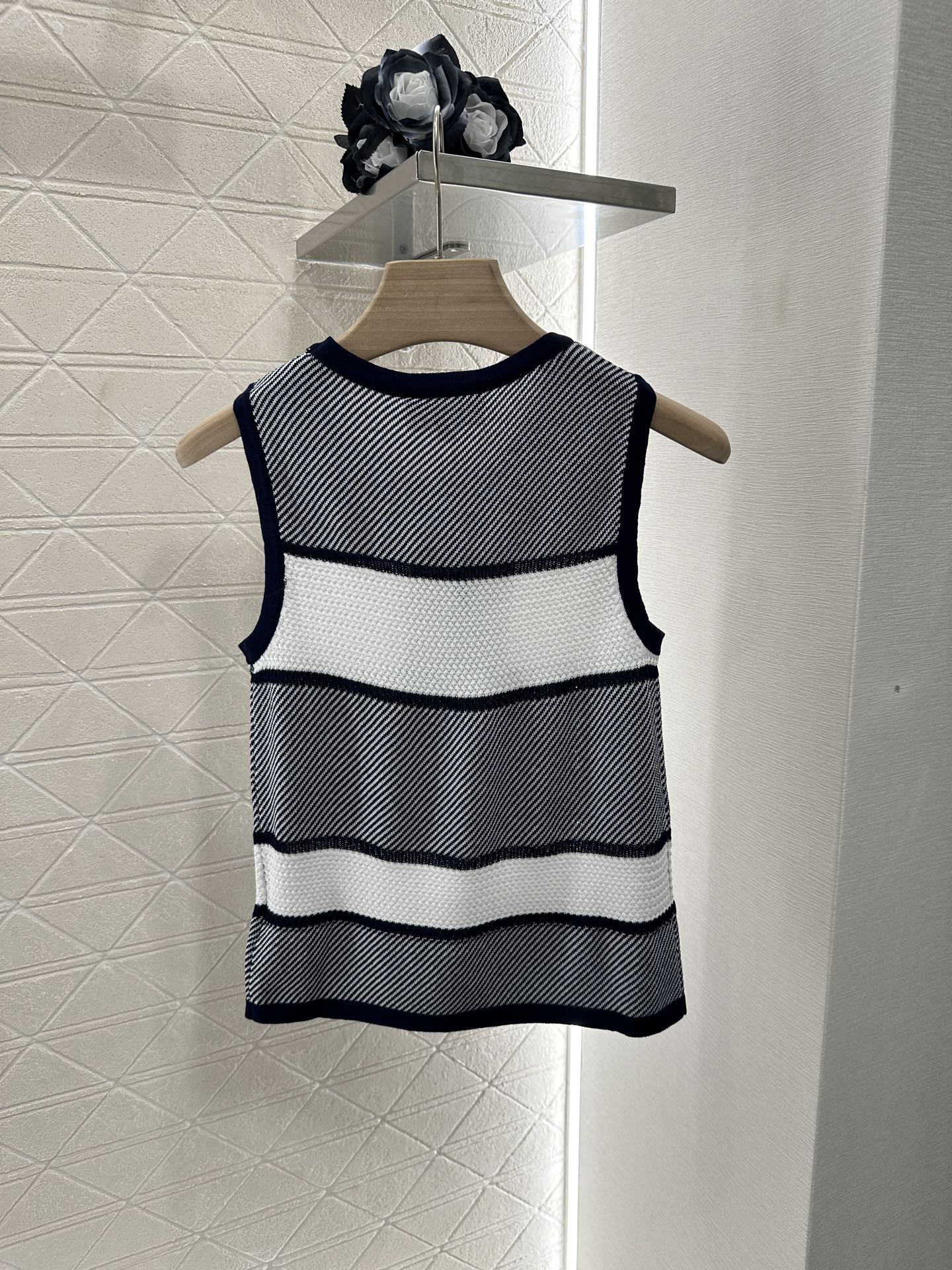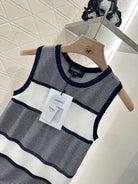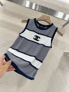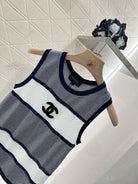 Chanel 25 Tank Top Black White Patchwork Knitted Crewneck