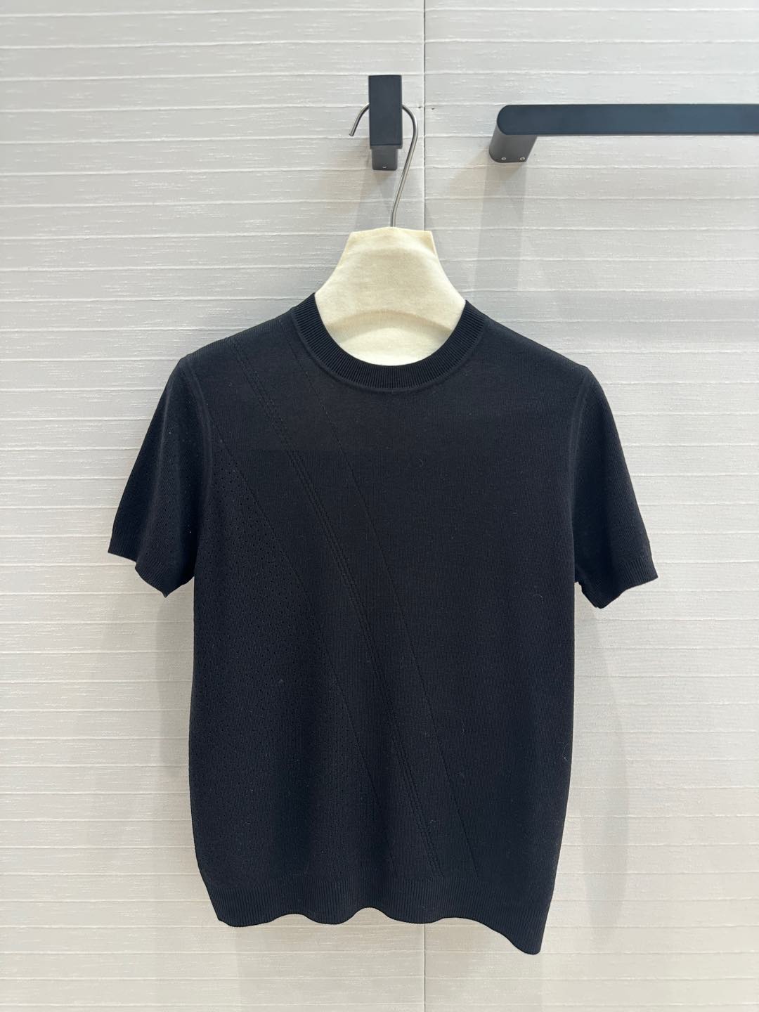Hm 25 Hollow Knit Short-Sleeve Top Black Tencel Cotton