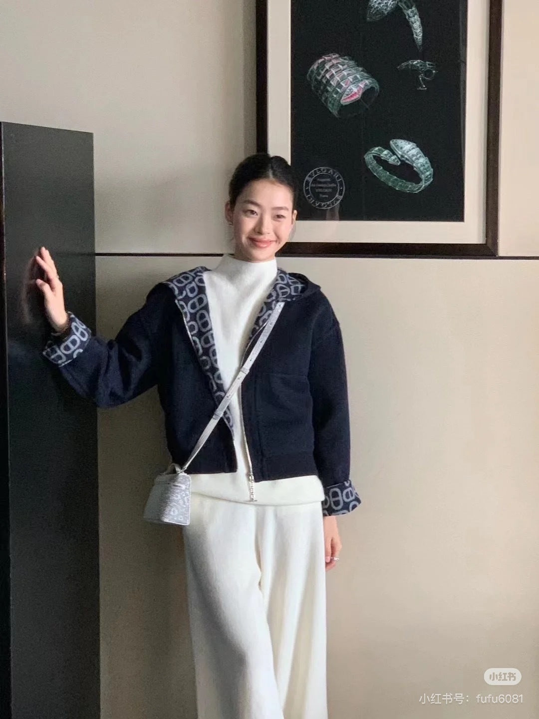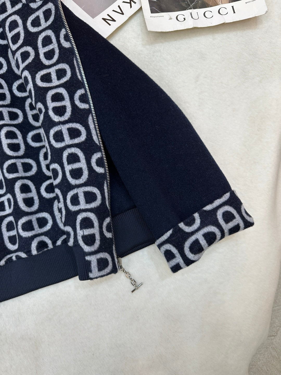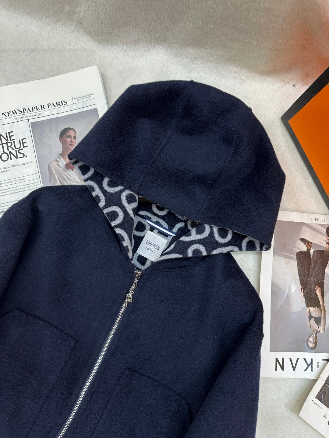HM 25 Navy Blue Cashmere Cropped Coat 280337