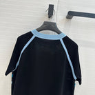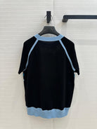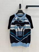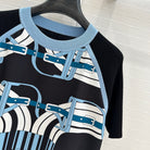 Hm 25 Print Patchwork Knit Top Black Blue Tencel Wool