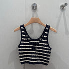 Prada 25 Striped Knitted Crop Top Navy Blue mix White Cotton 219409