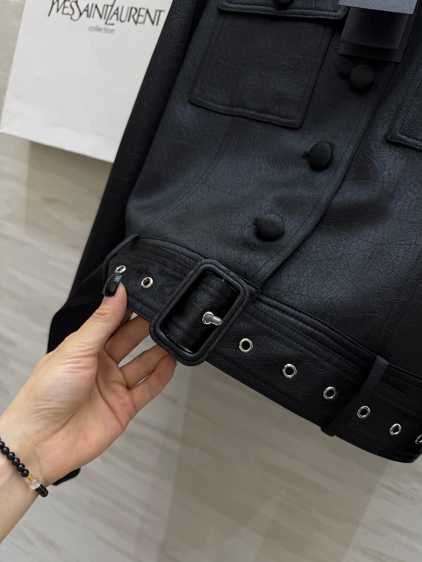 YSL 25 Cracked Pleated Jacket Black Acetate