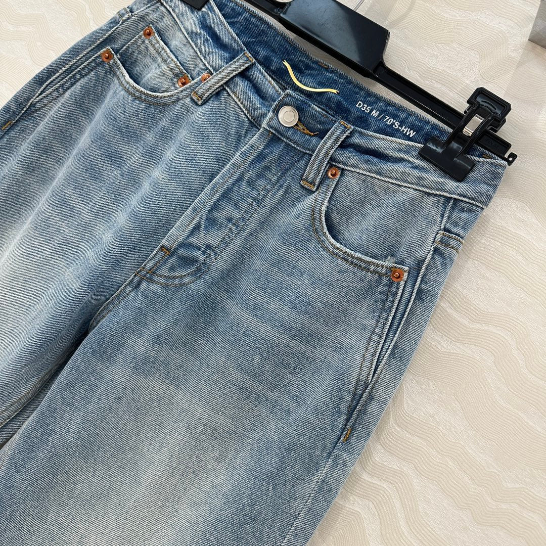 YSL 25 Denim Puff-sleeve Sress with Gathered Waist Blue Cotton