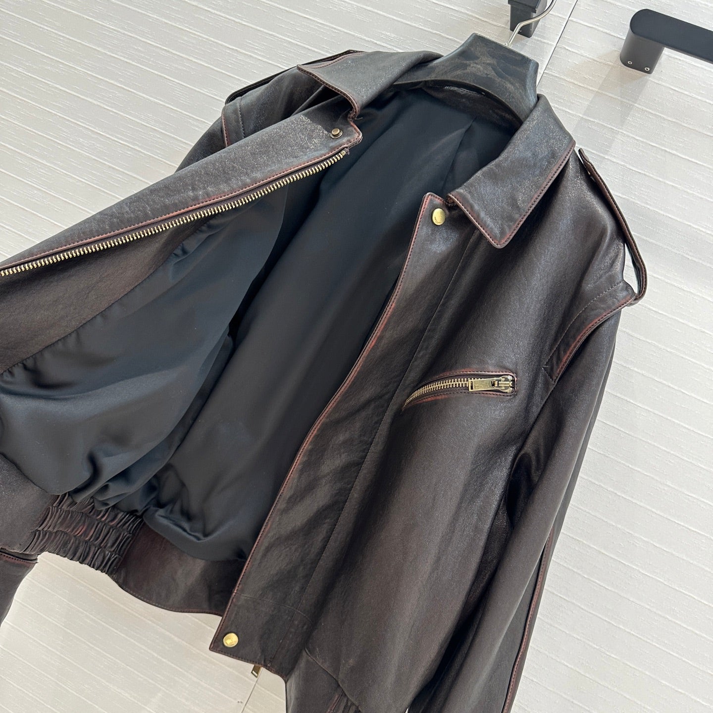 YSL Right-angle Shoulder Silhouette Jacket Brown Lambskin