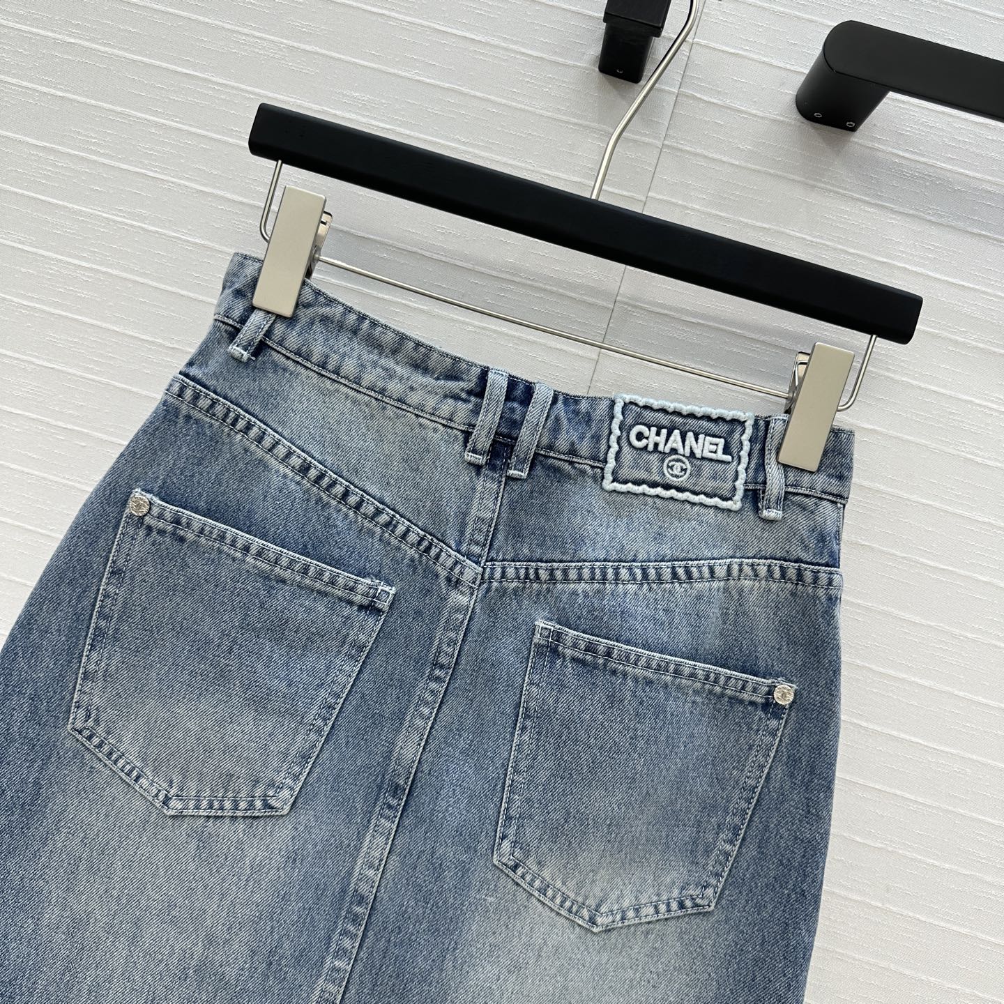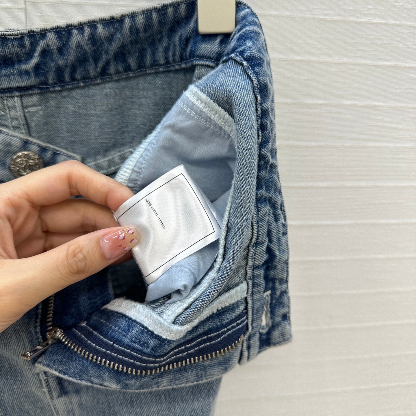 CC 25 Single-breasted Short Skirt Light Blue Denim Cotton