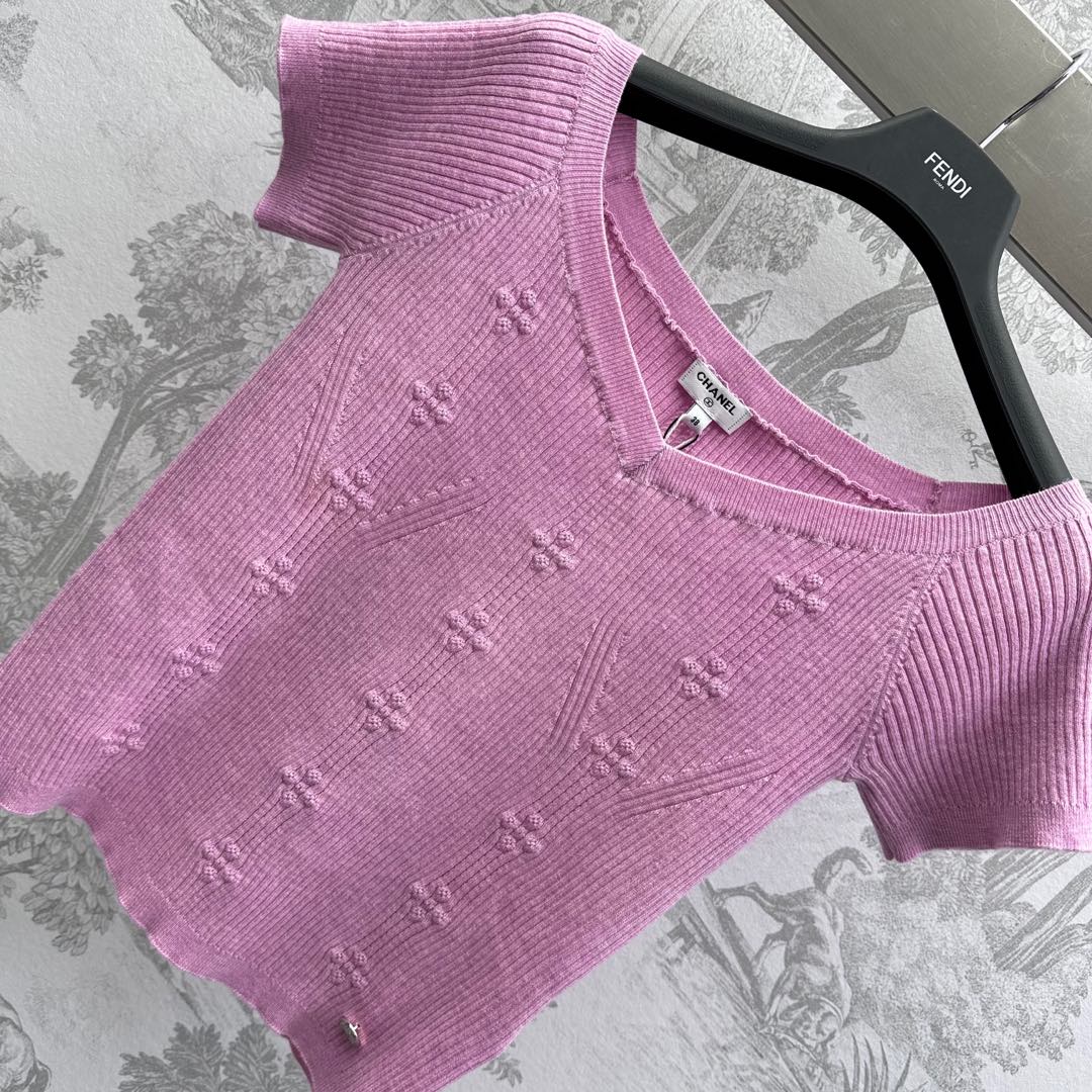 CC 25 Hollow Knitted T-shirt Pink cotton