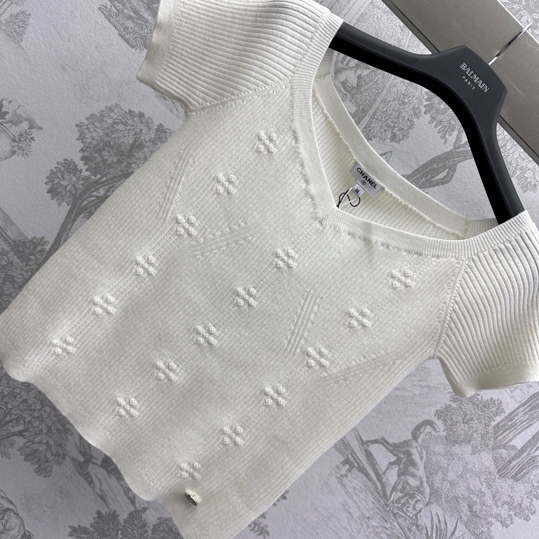 Chanel 25 T-shirt Black White Patchwork Knitted Crewneck