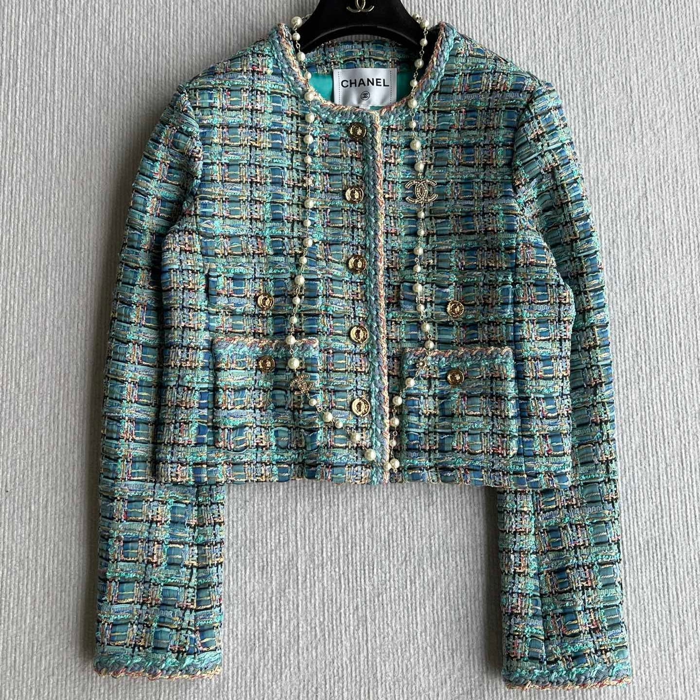 Celine Jacket Light Blue Gold Wool Cotton 290465