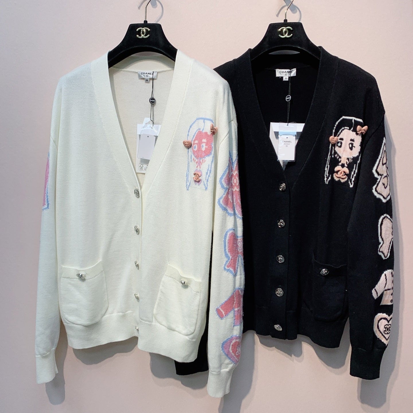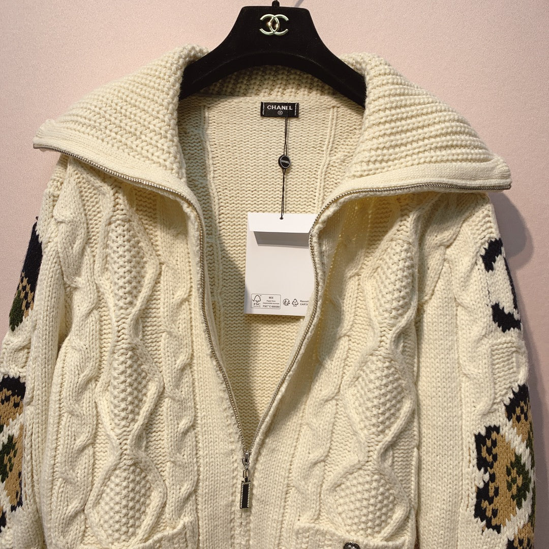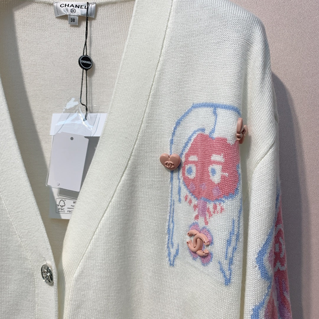 Celine 25 Striped Cardigan White Wool Polyester 281502