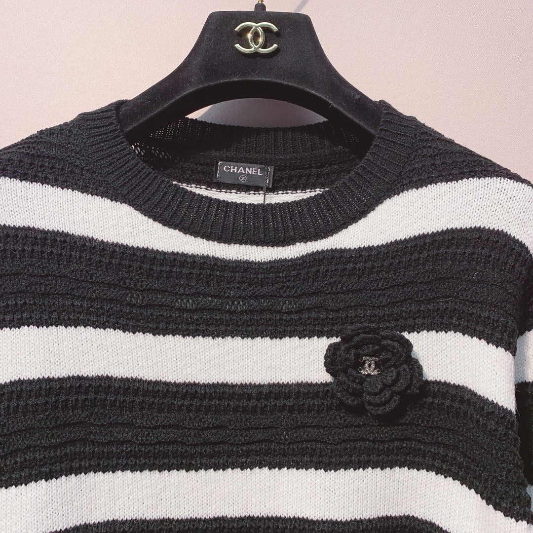 Celine 25 Striped Sweater White Wool Polyester 281500