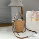 Chloe Woody straw bucket bag beige raffia