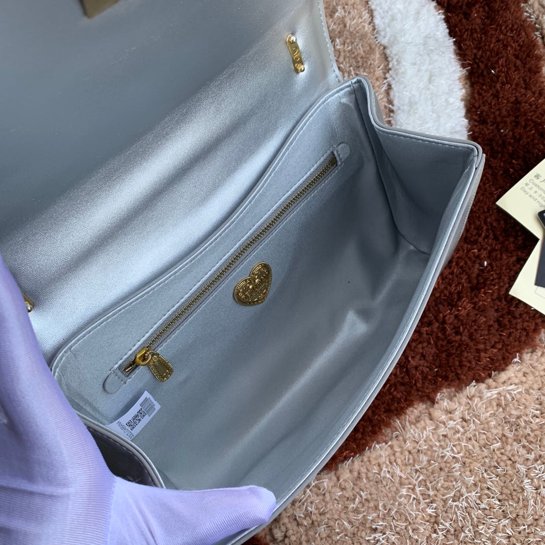 large devotion 26 shouder bag silver metalic cafskin