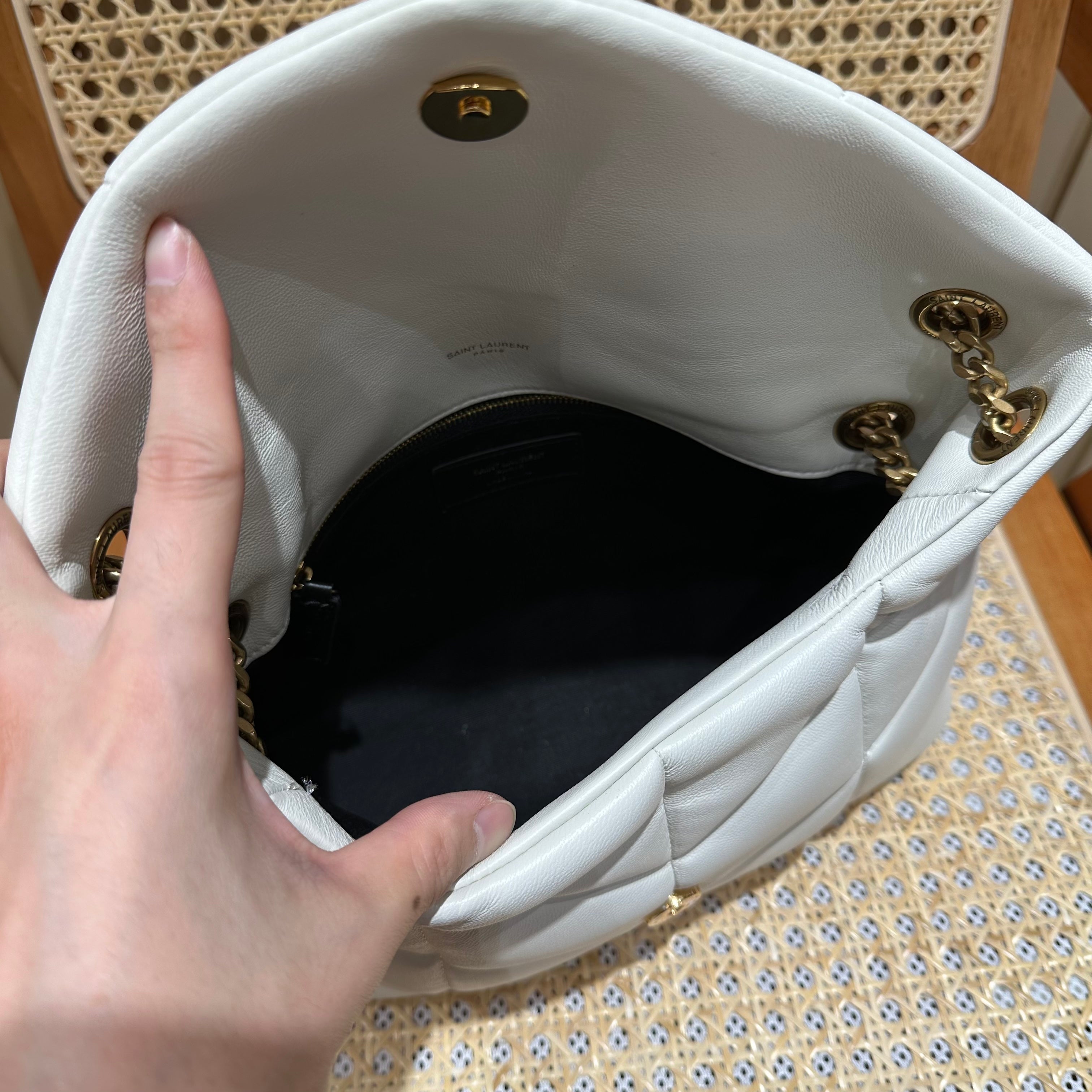 YSL Loulou Puffer Quilted Bag White Gold Lambskin 338844