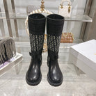CD D-Major Boot Black Mix White Calfskin And Oblique Jacquard Fabric