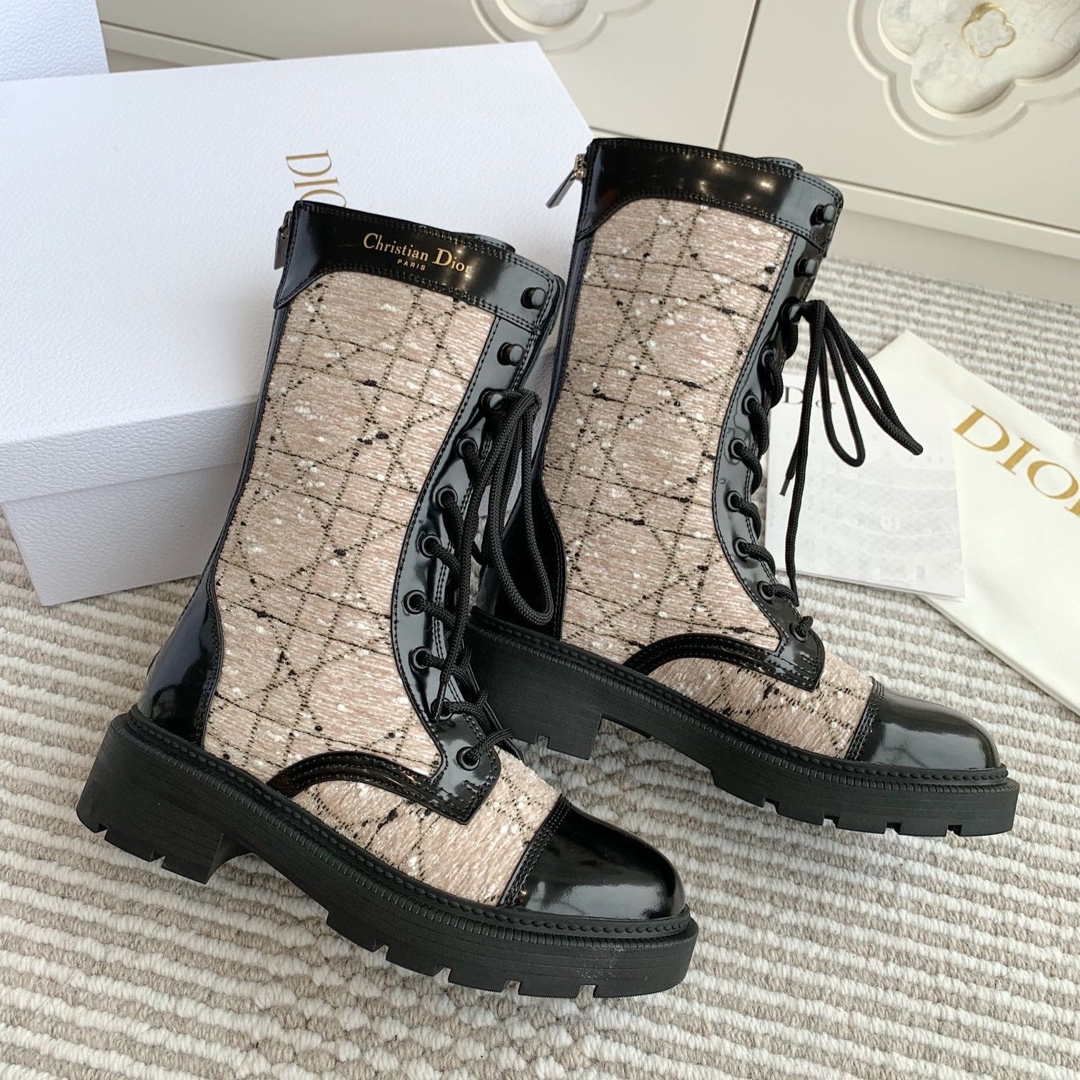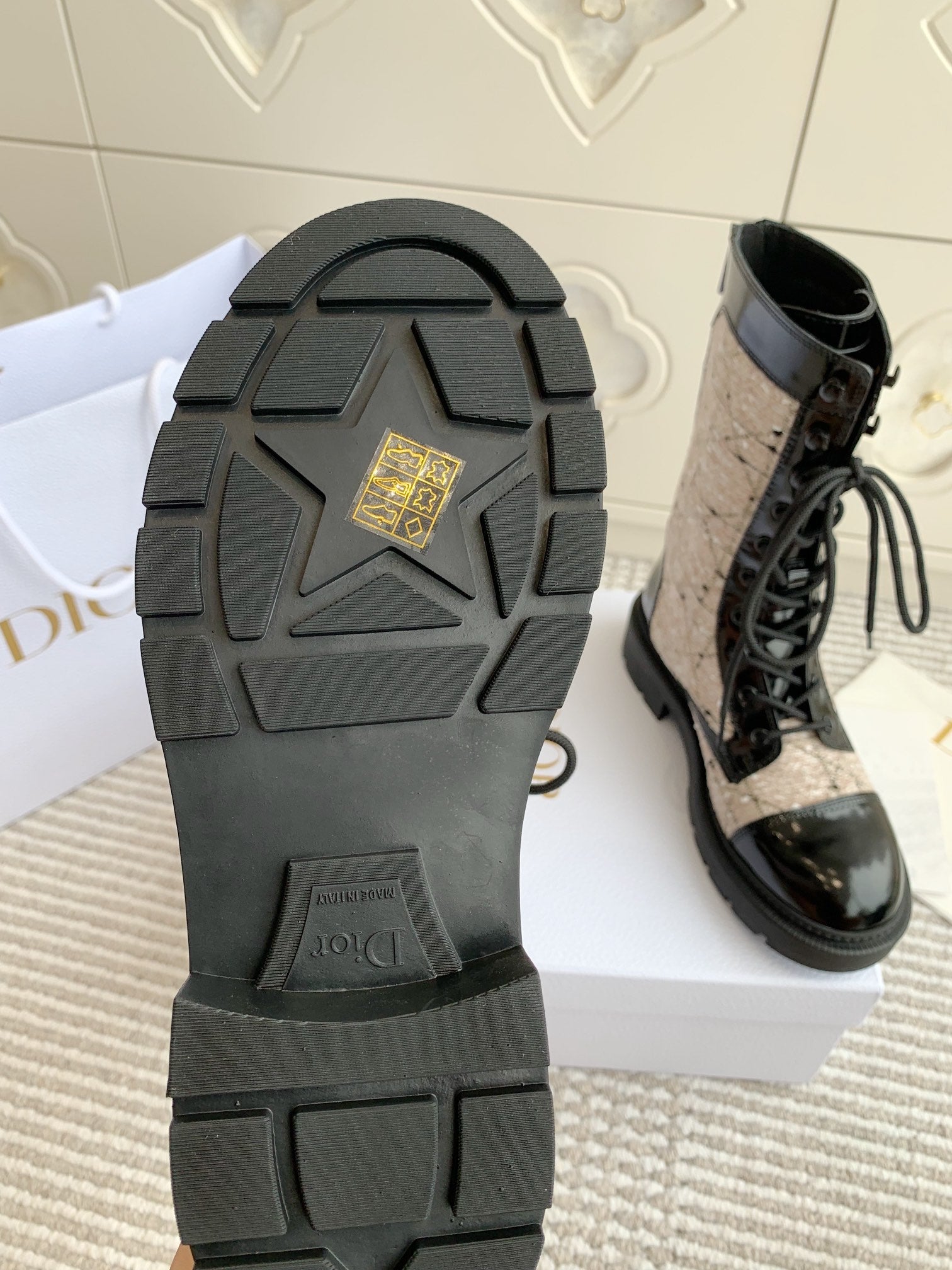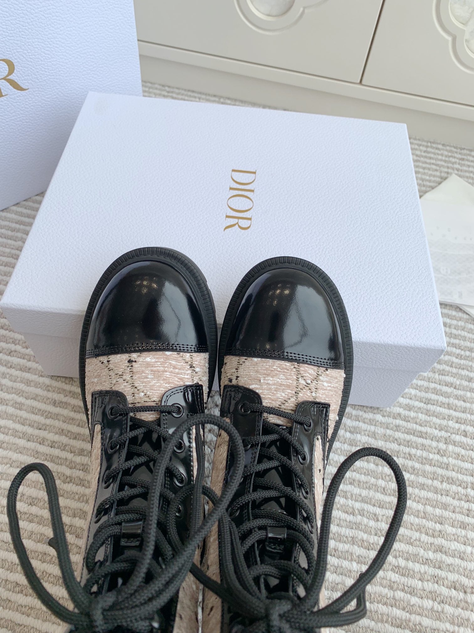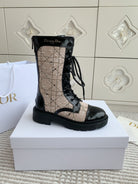 CD D-Unit Ankle Boot In Beige Mix Black Tweed Fabric And Glossy Cowhide 105088