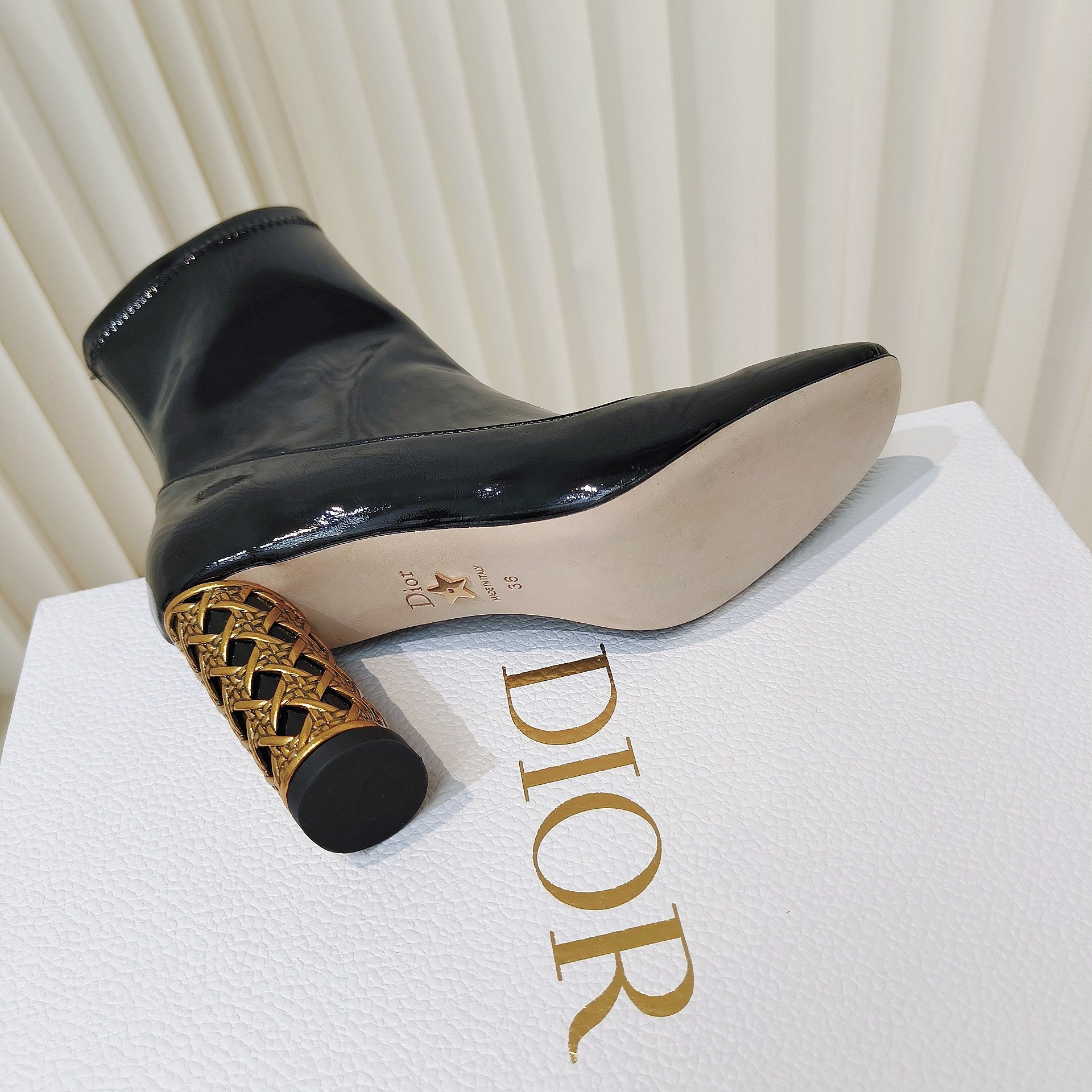 CD Icon Heeled Ankle Boot 80mm In Glossy Black Cowhide 111384