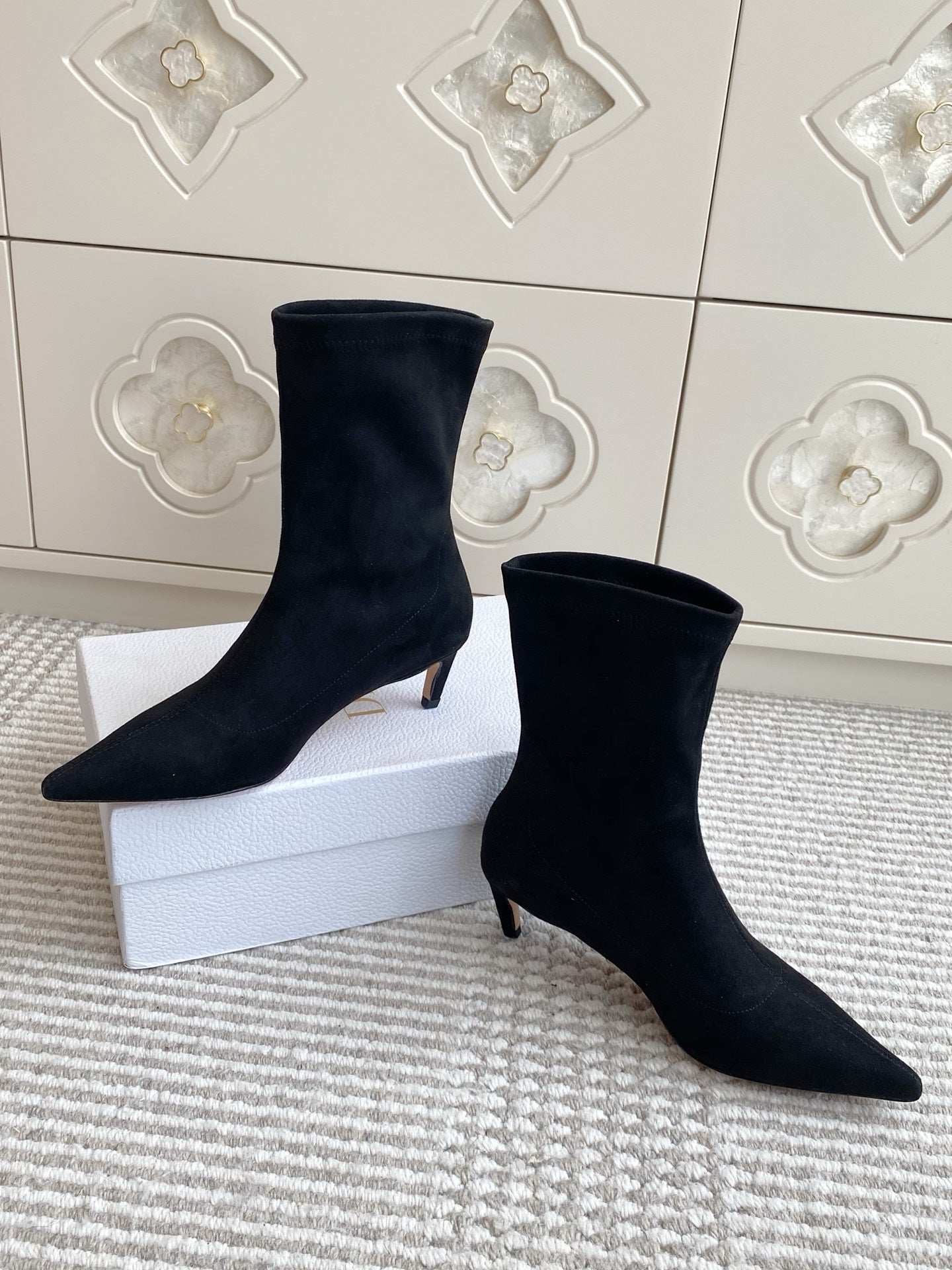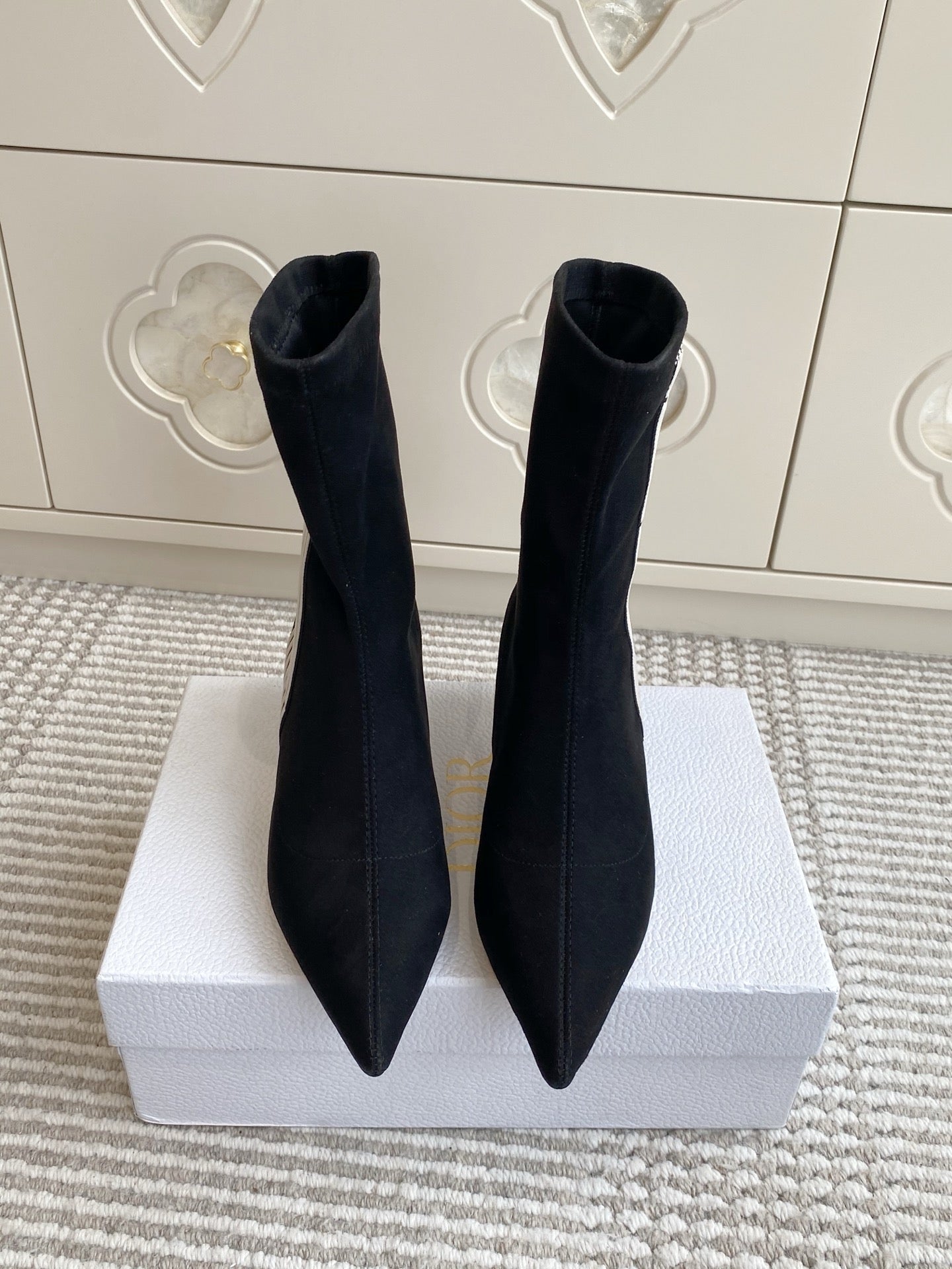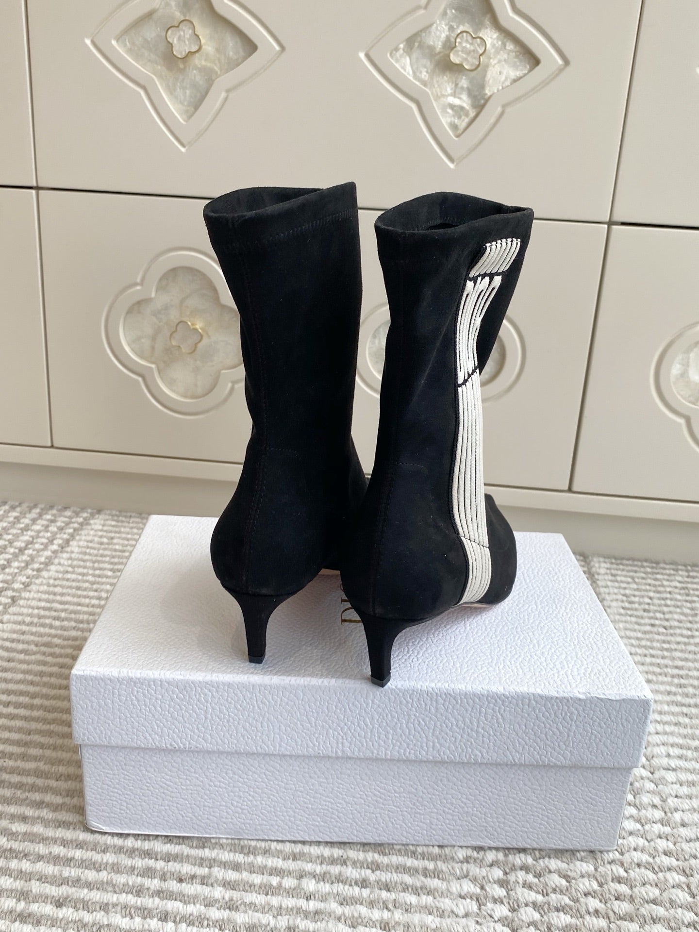 Dior 2025 Tribales Heeled Ankle Boot 50mm Black mix White Suede 501189