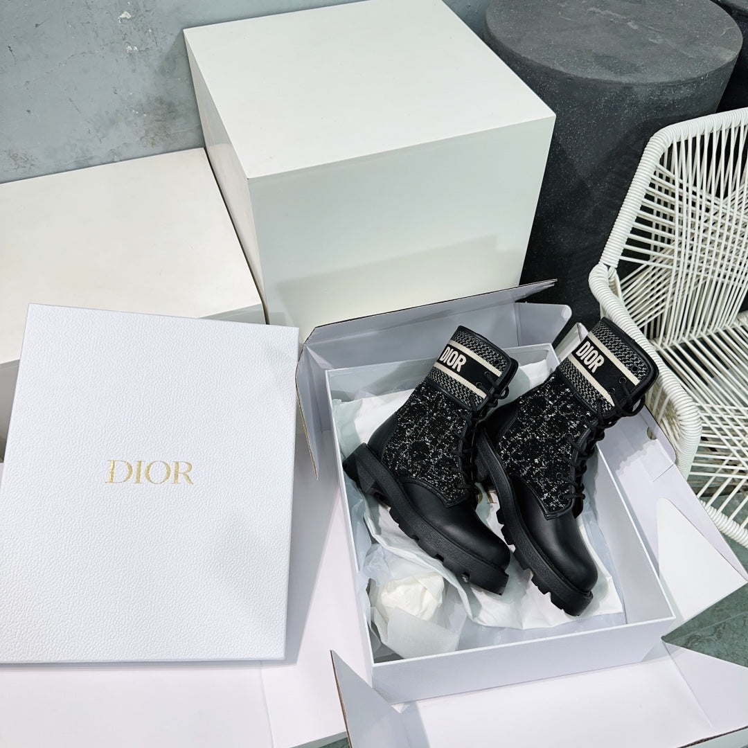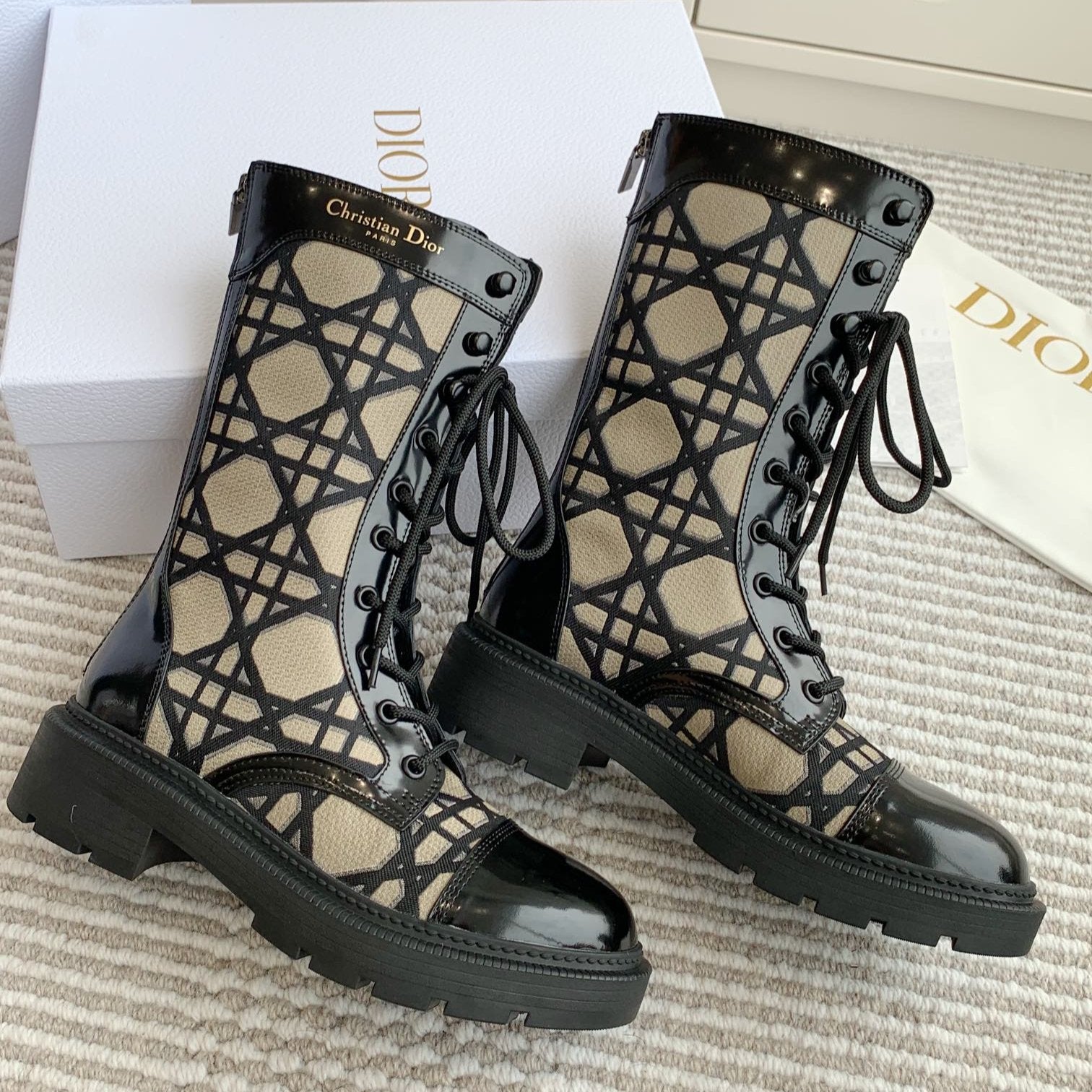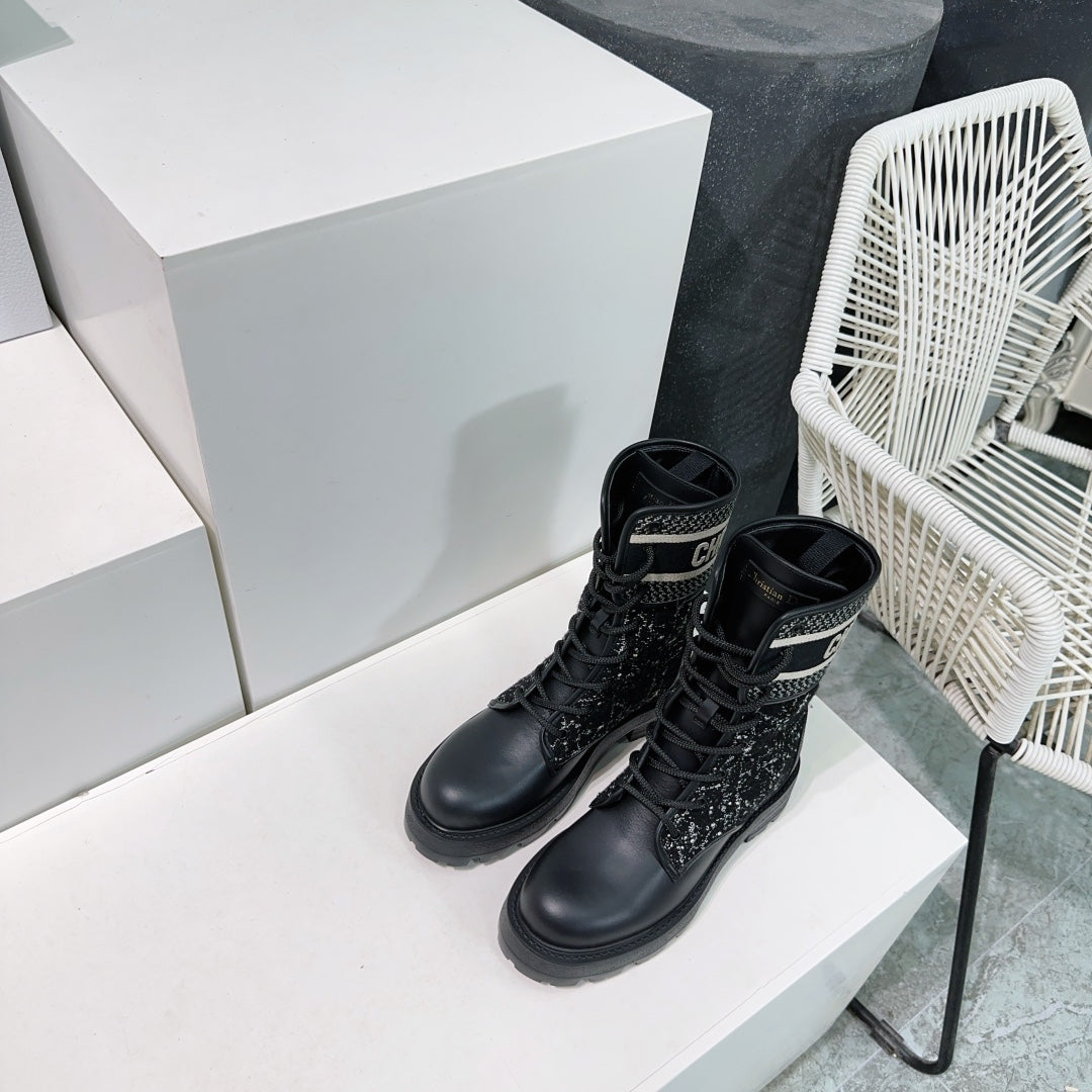 CD D-Major Boot Black Mix White Calfskin And Oblique Jacquard Fabric