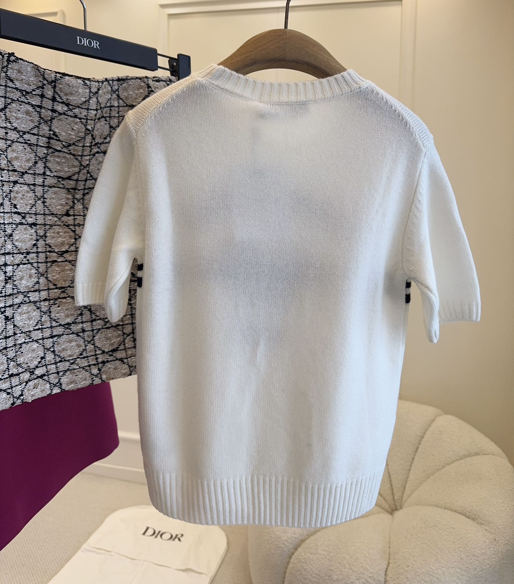 CD 25 Butterfly Knitted Short Sleeves Top White Black Cotton