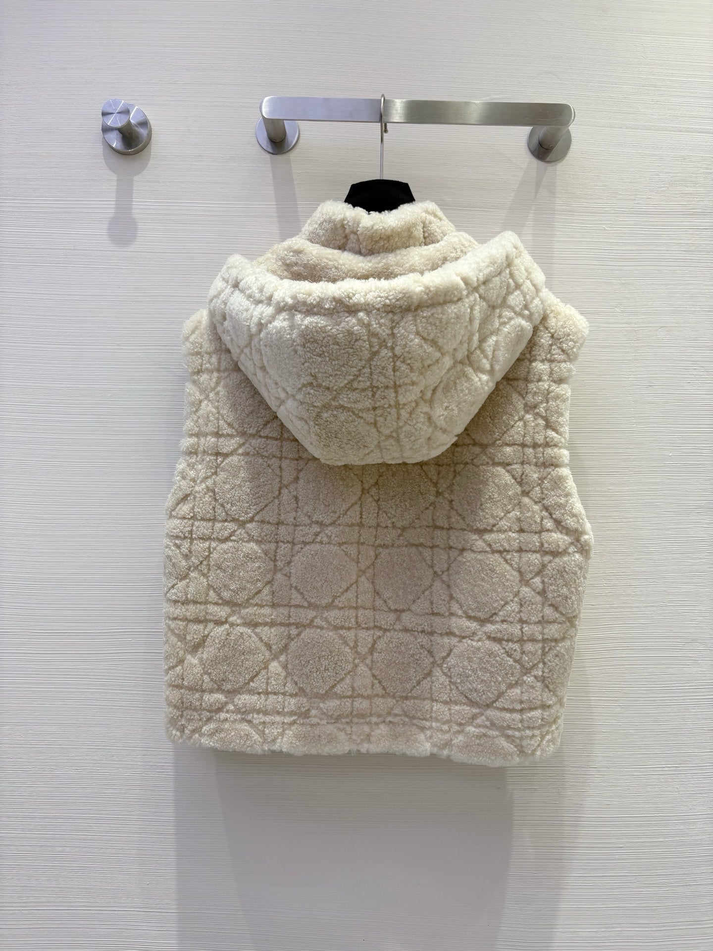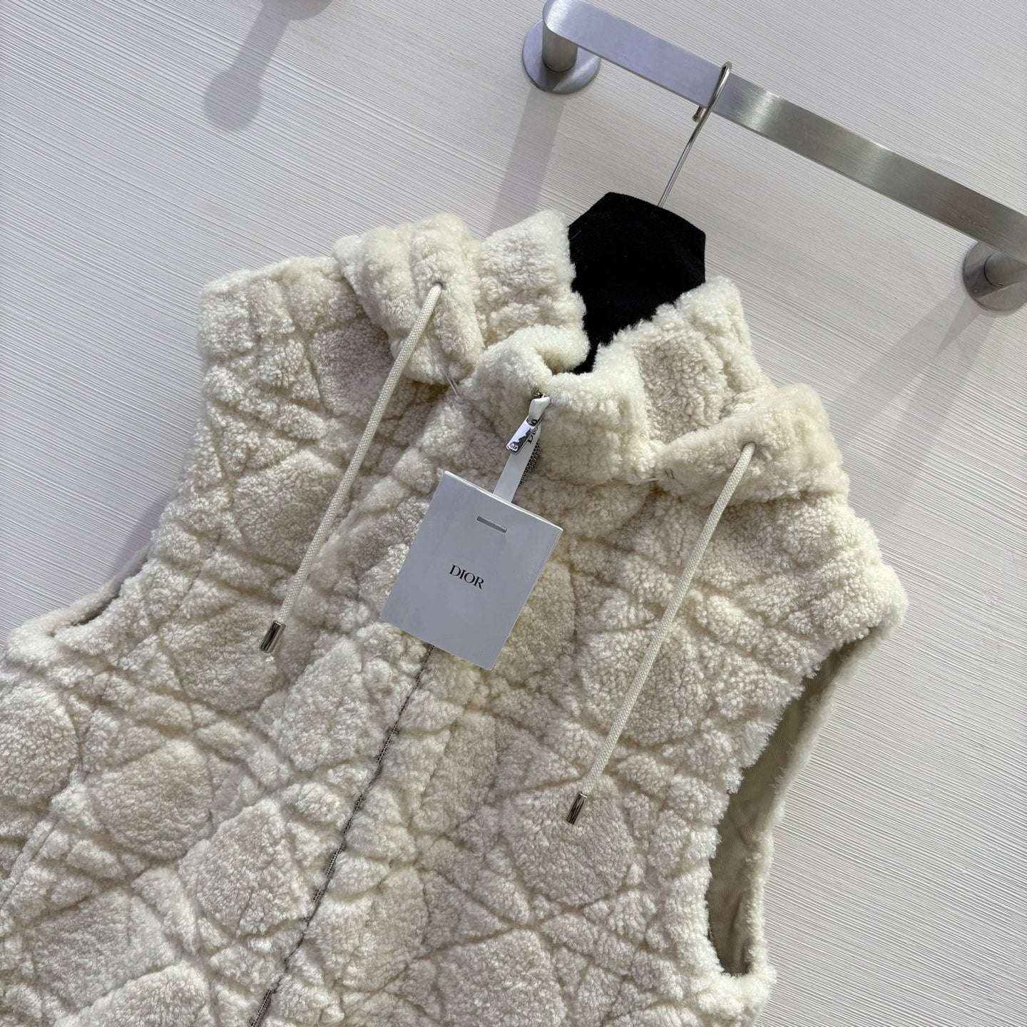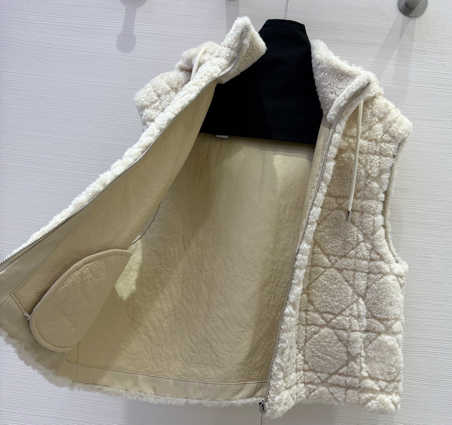CD 25 Hooded Vest Leather And Fur Ivory White