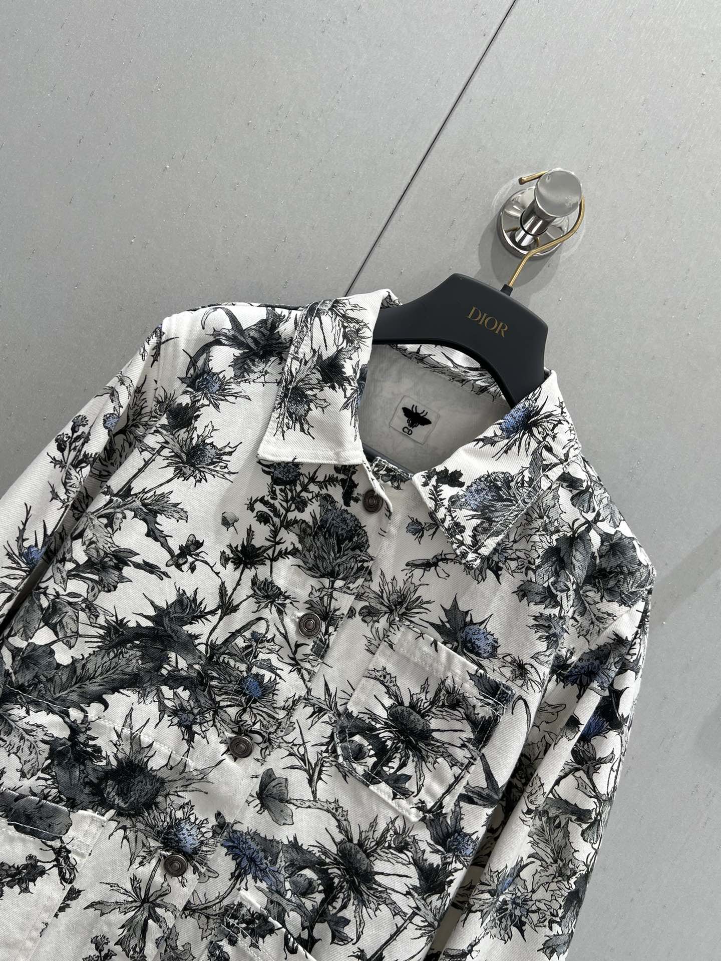 CD 25 Plant Flower Print Denim Jacket White Gray Cotton 205152