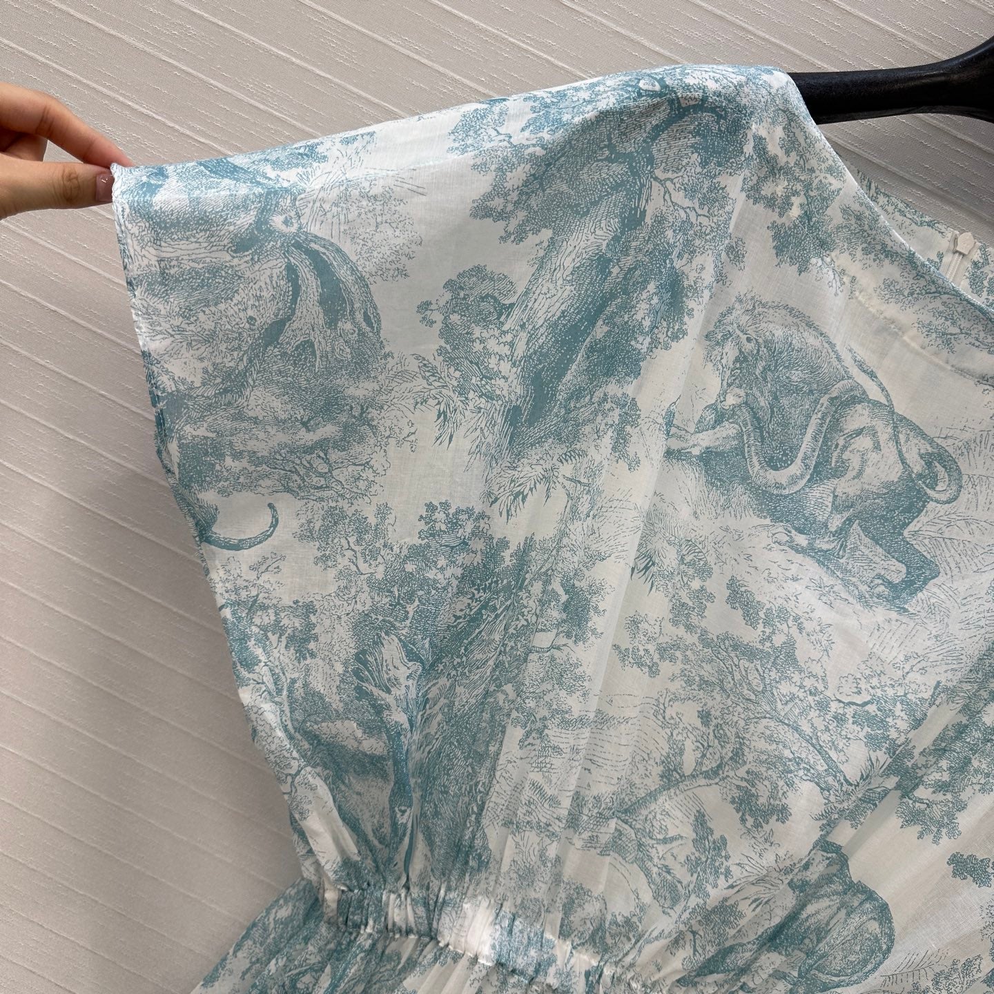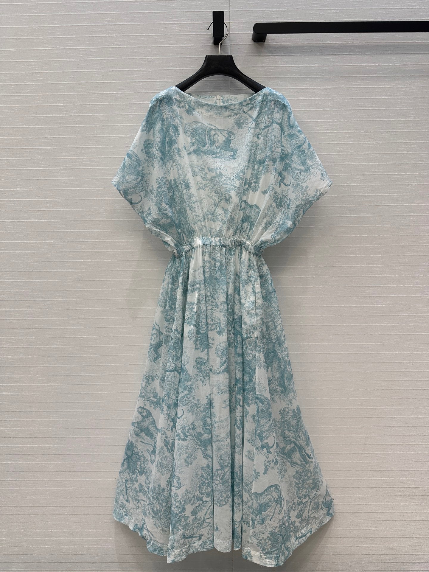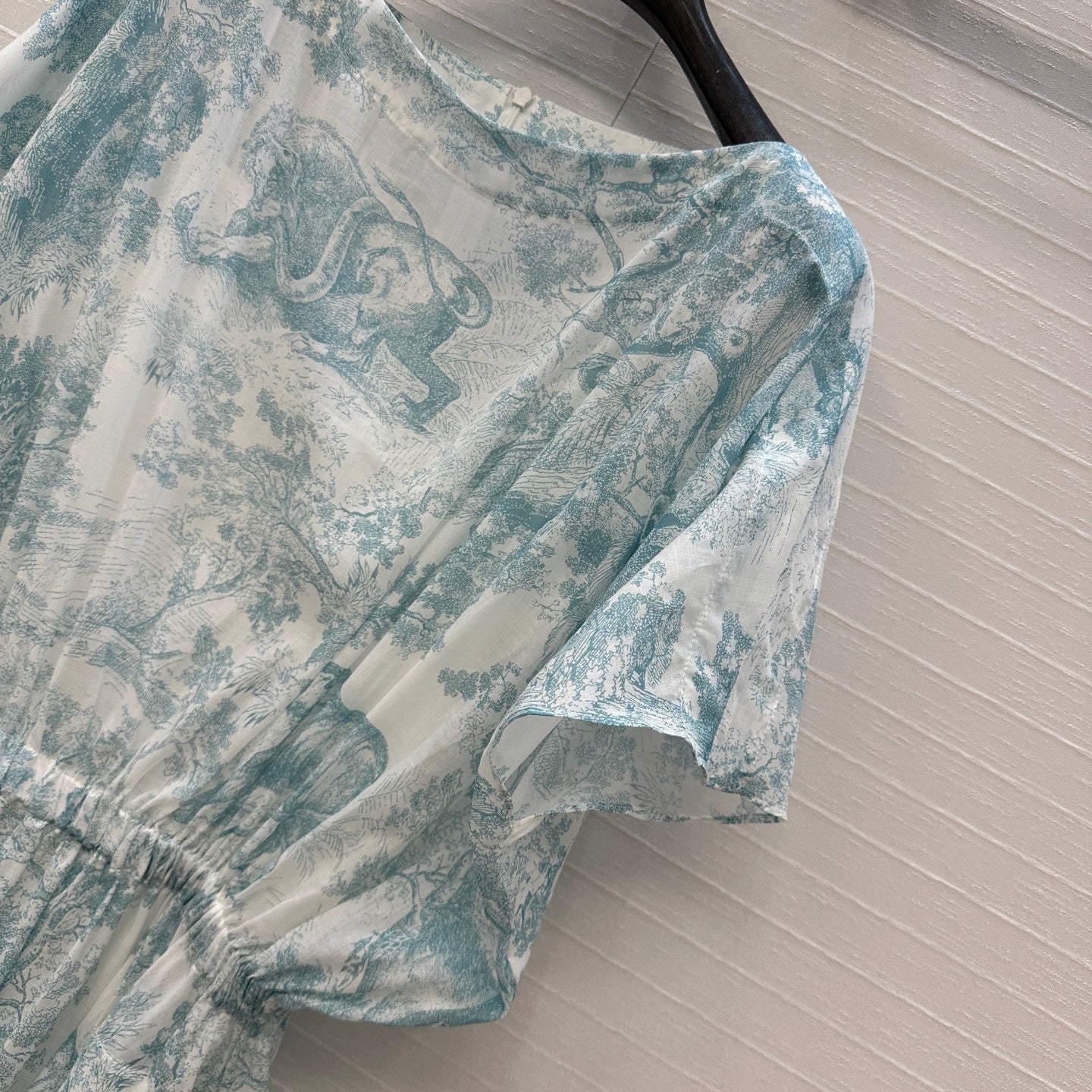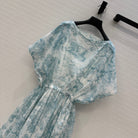 CD 25 Sauvage Jouy Boat Neck Dress Light Blue mix White Cotton