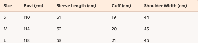 - Size : S, M,L