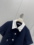 CD 25 Short-sleeved Jacket with Pleated Shorts Set Blue Polyester 220935