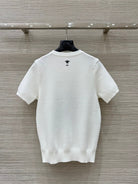 CD 25 Snake Embroidery Knitted Short-sleeved Top White Tencel Wool