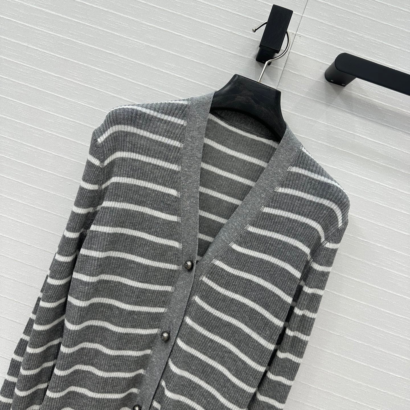 CD 25 Striped Cardigan Gray mix White Linen Cashmere