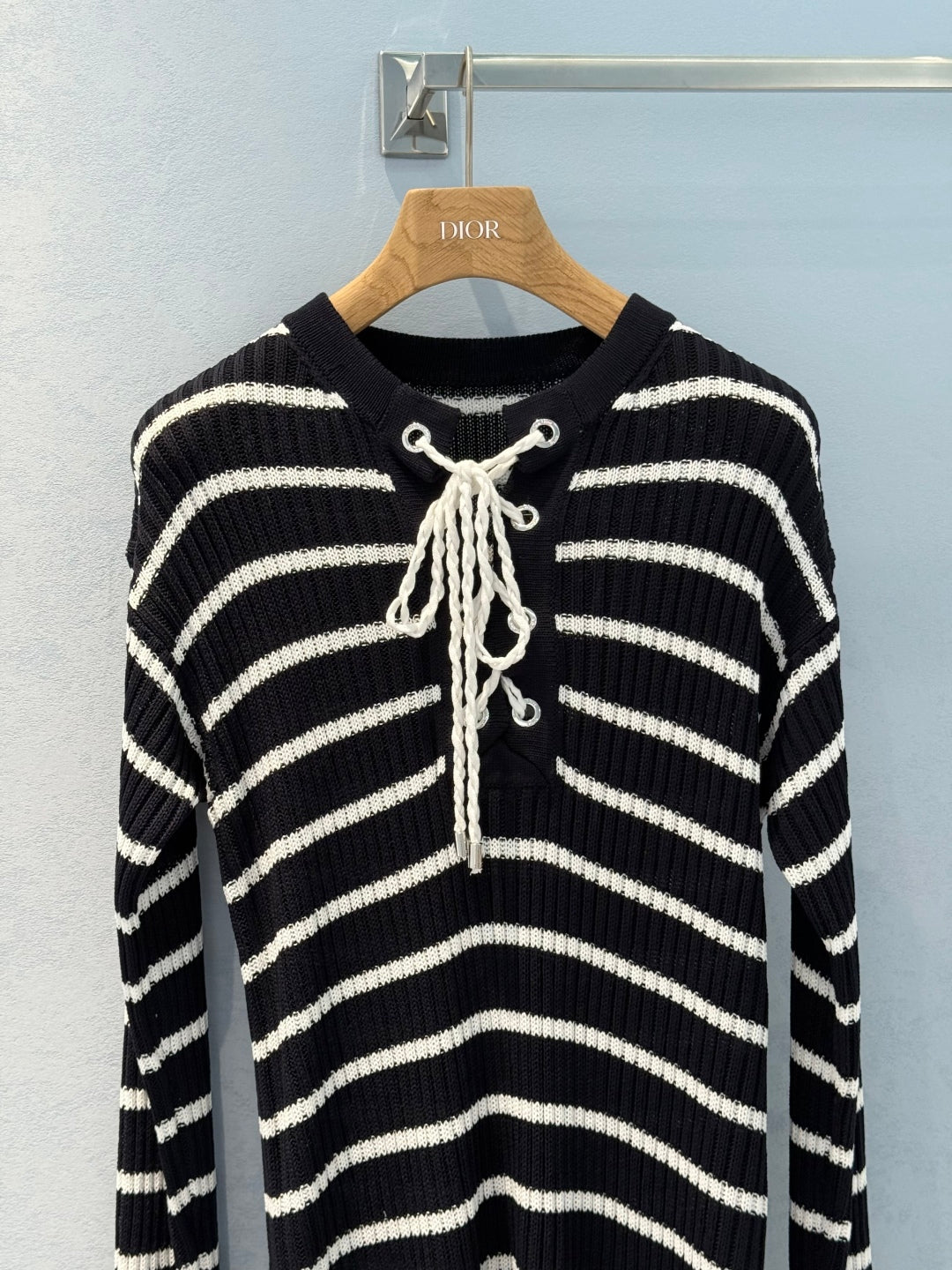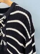 CD 25 Striped Knitted Long-sleeved Dress Black Cotton