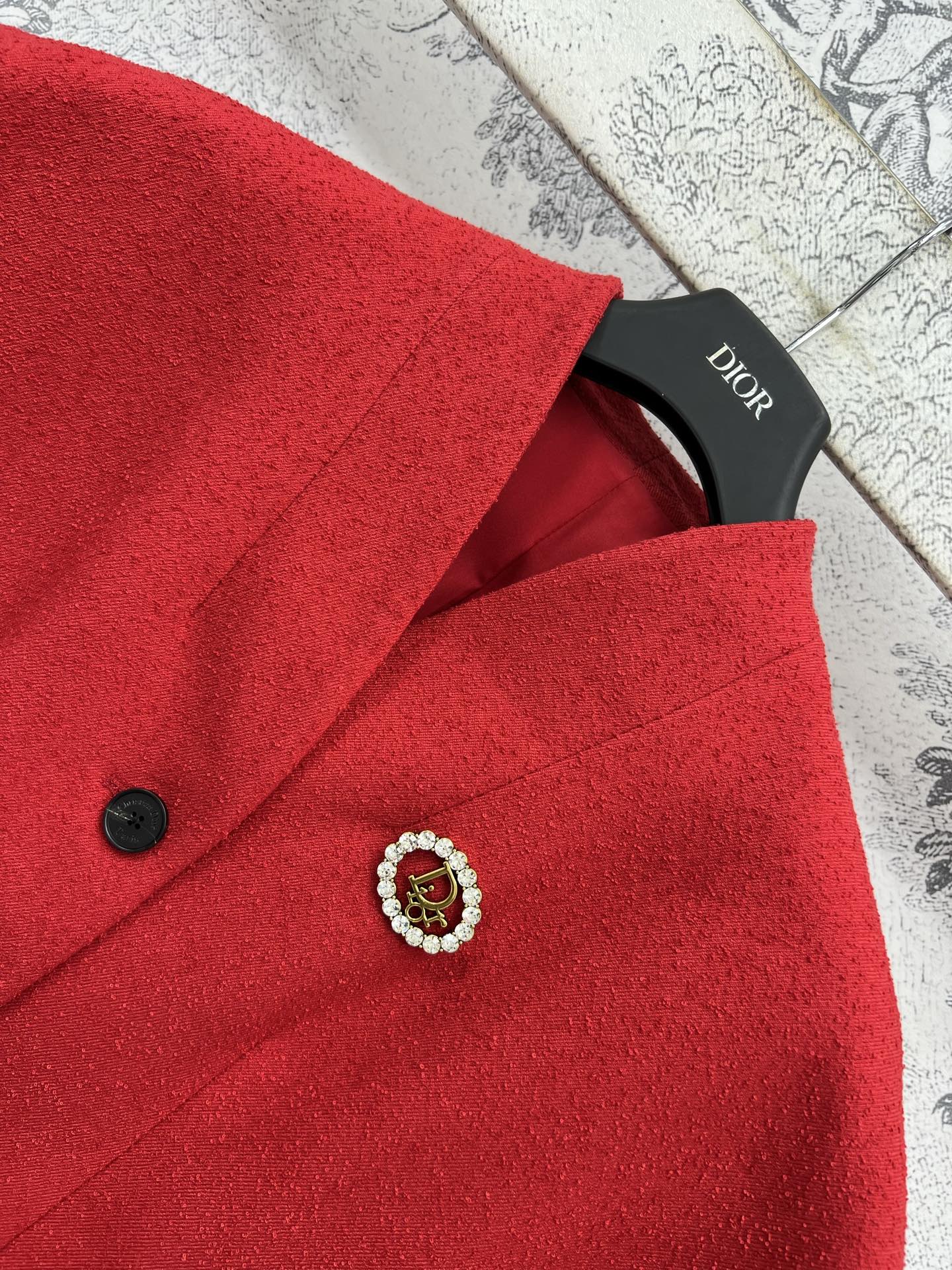 CD 25 V-neck Short-Sleeved Jacket Red Cotton