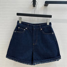 CD Denim Shorts With Old Flower Pattern Blue Cotton