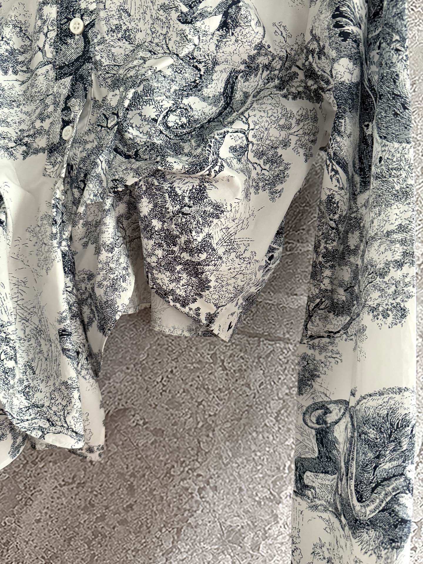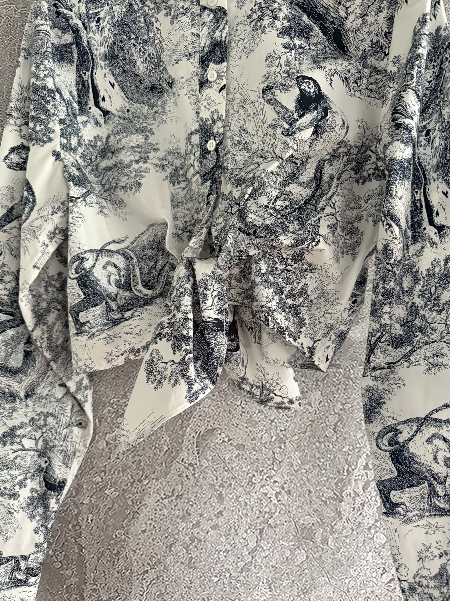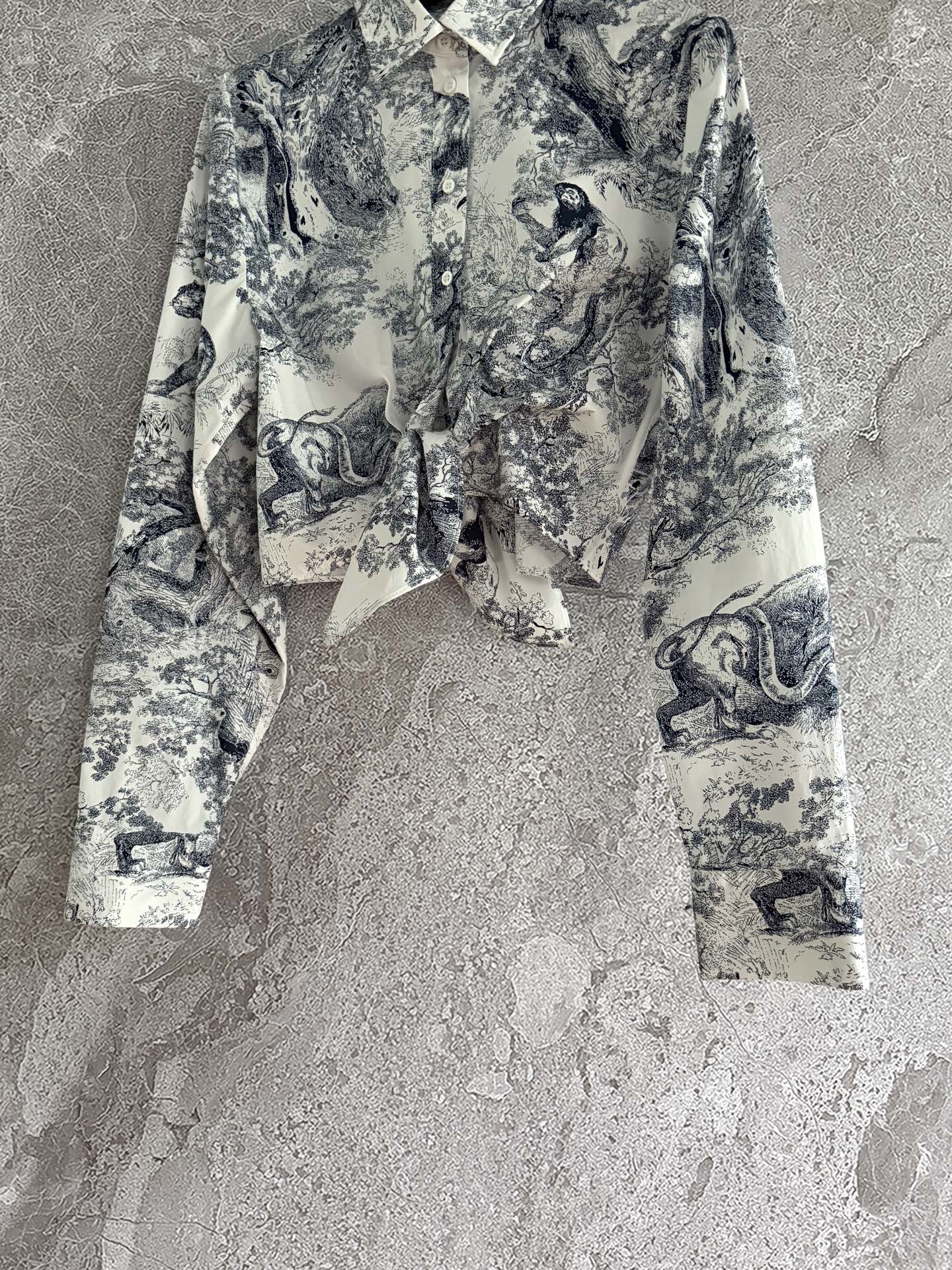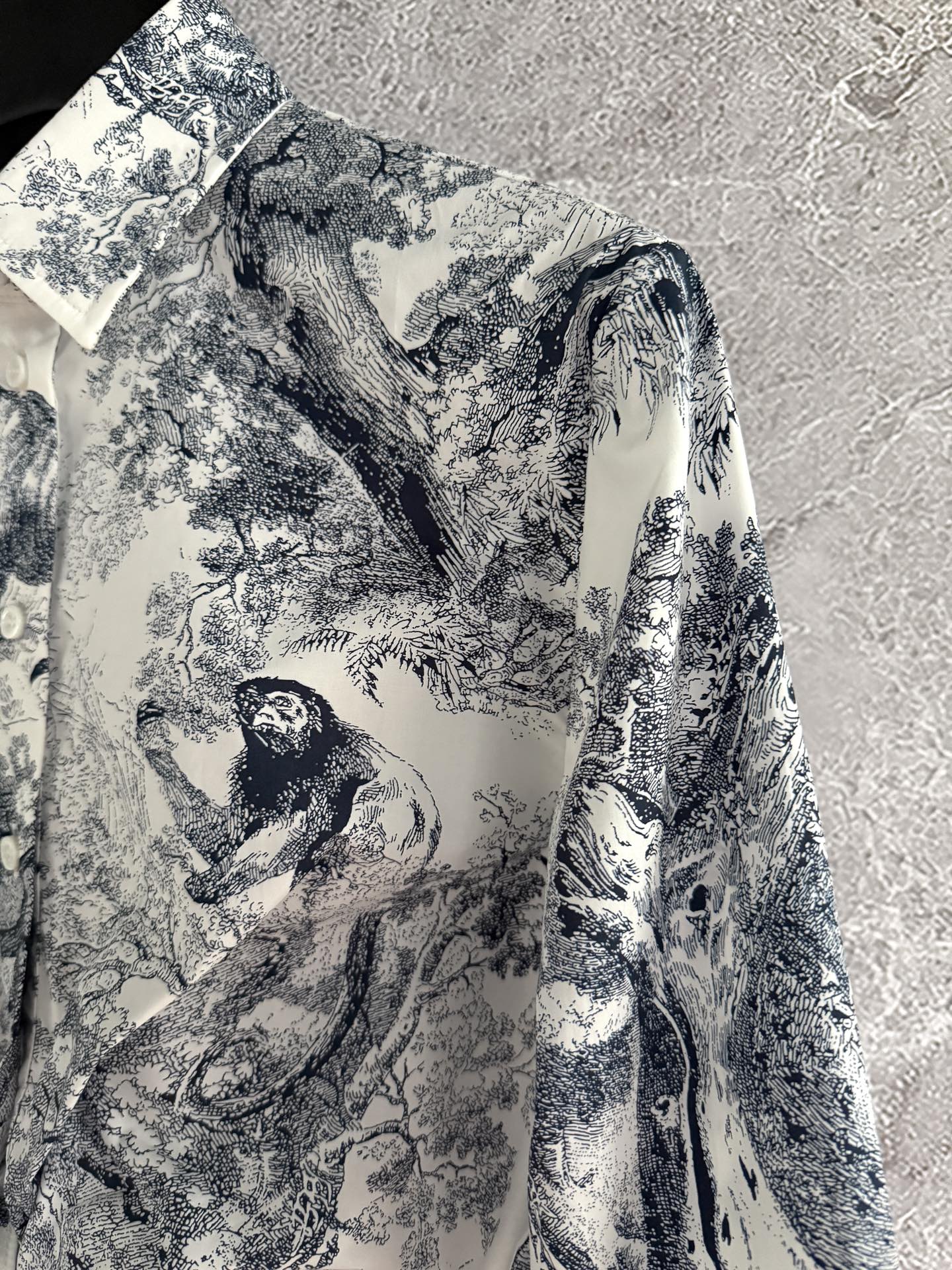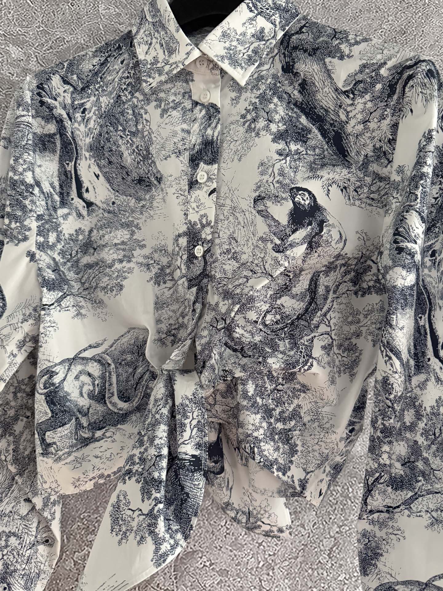 CD Slim-fitting Tie Shirt Blue White Cotton Silk