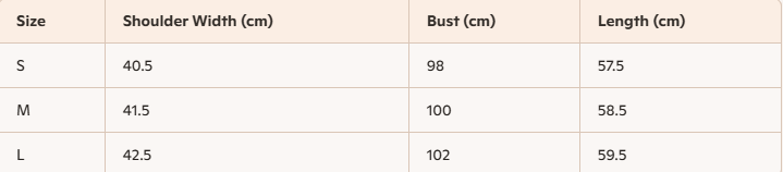 • Size:  S,M,L