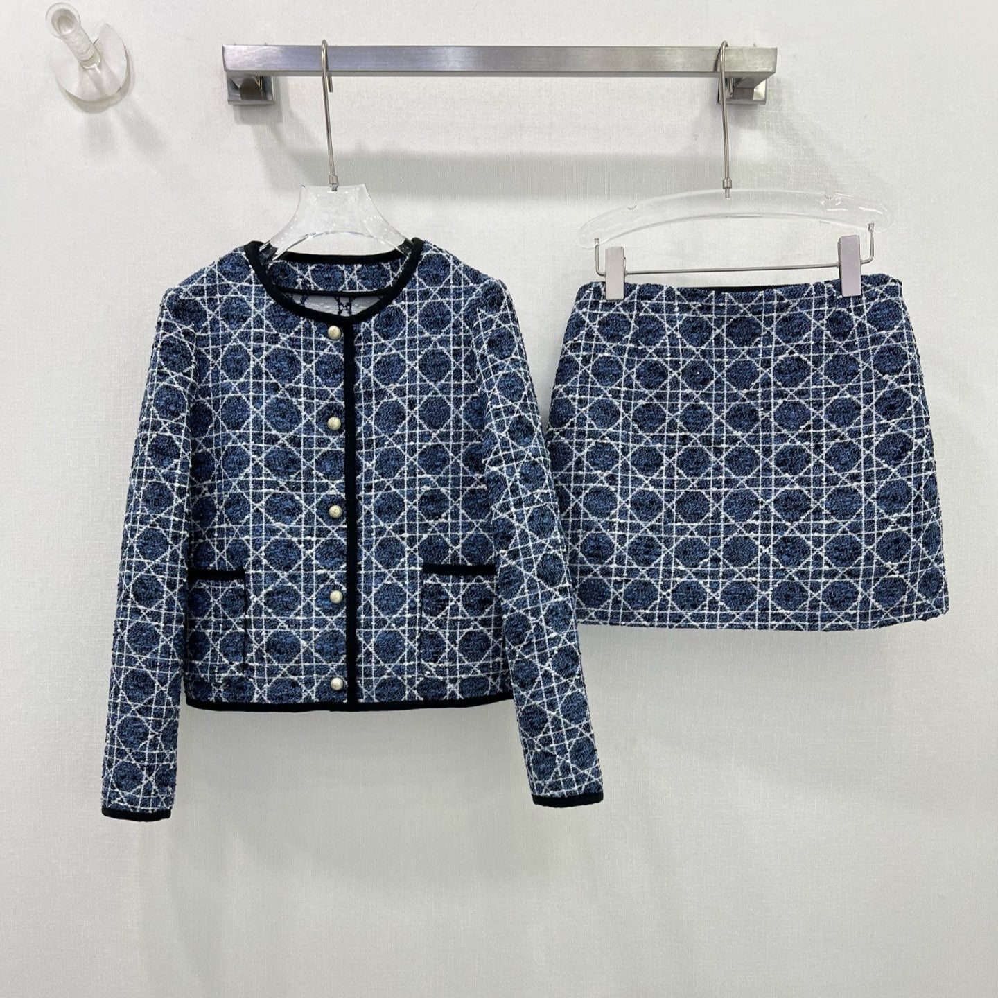 CD 25 Plaid Quilted Lapel Set Beige Cotton