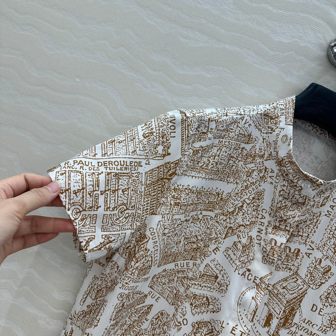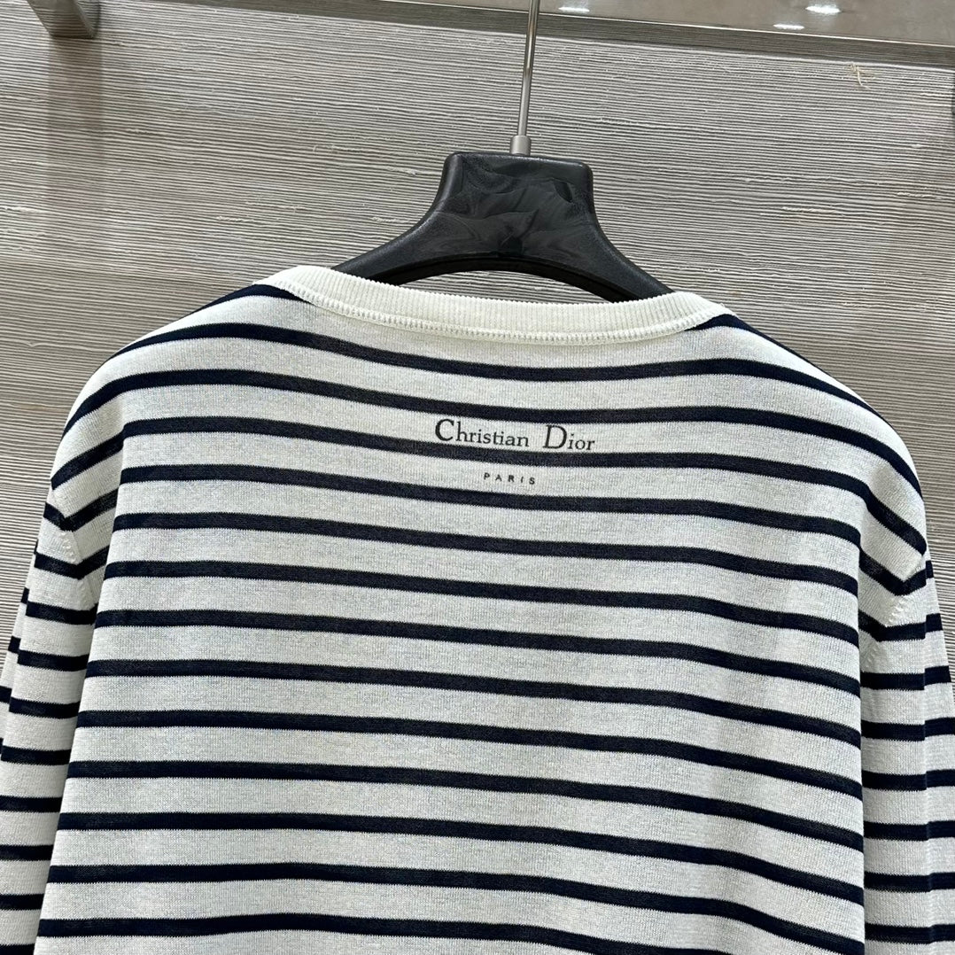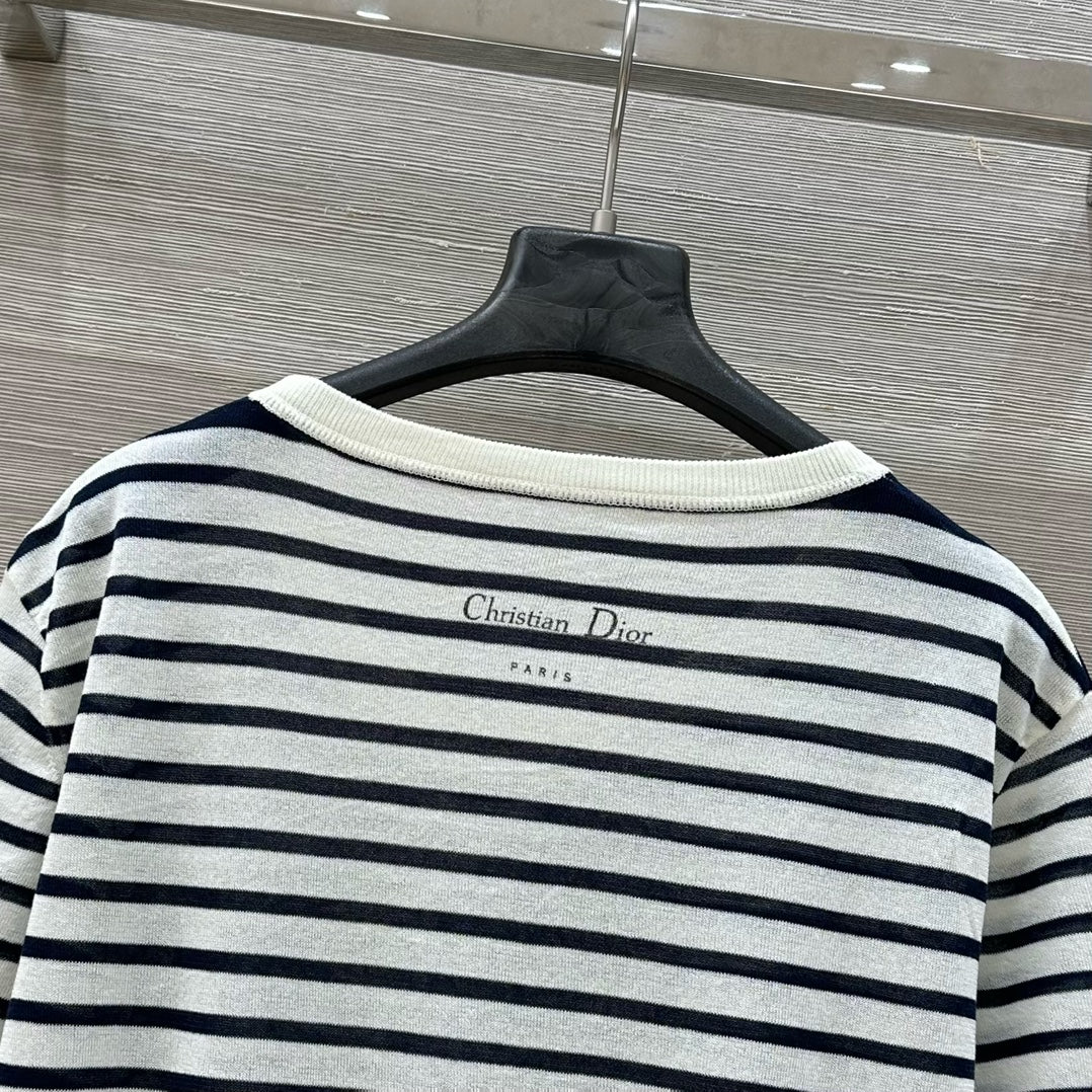 CD Rhinestone Embroidered Short-sleeved T-shirt Black and Beige Cotton