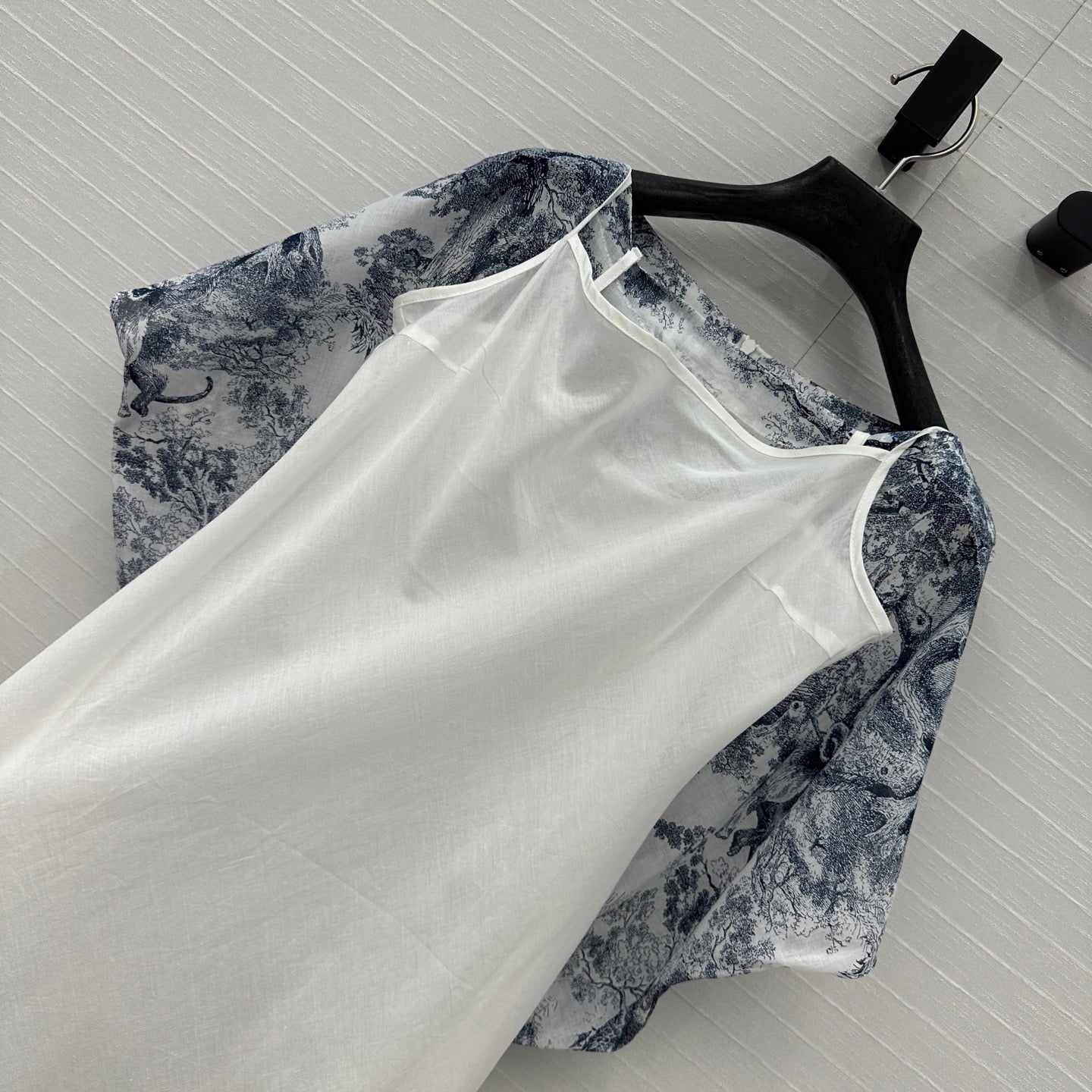 CD 25 Oblique Buttoned Long-sleeved Shirt White Cotton