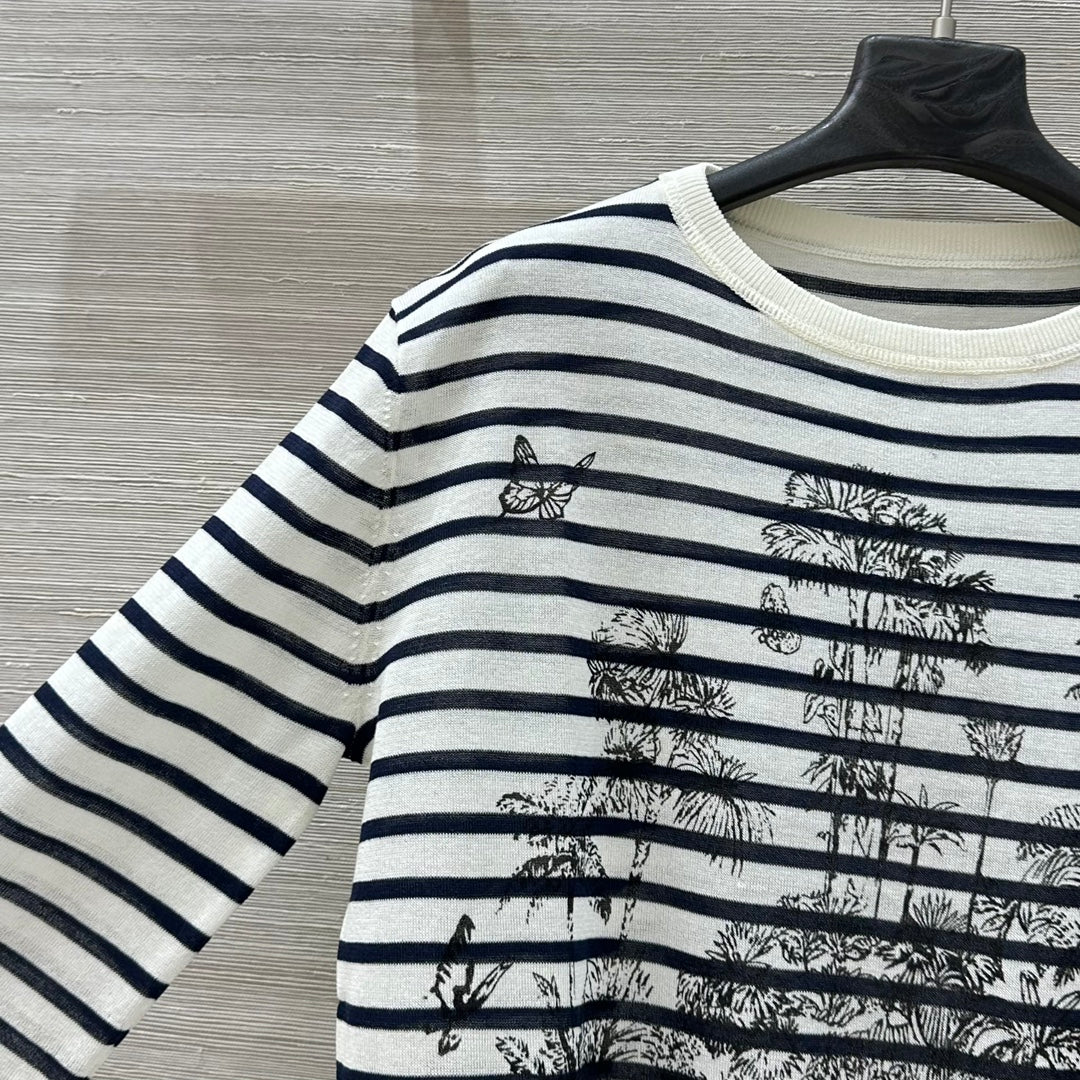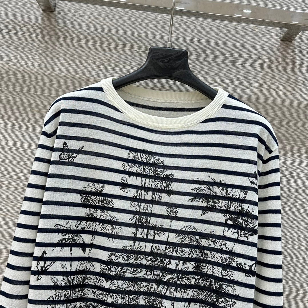 CD Coconut Knitted Short-sleeved Top Black mix White Cotton Polyester