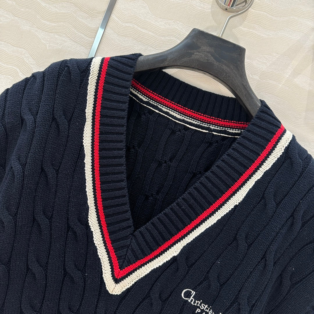 CD Knitted Vest Navy Blue Cotton