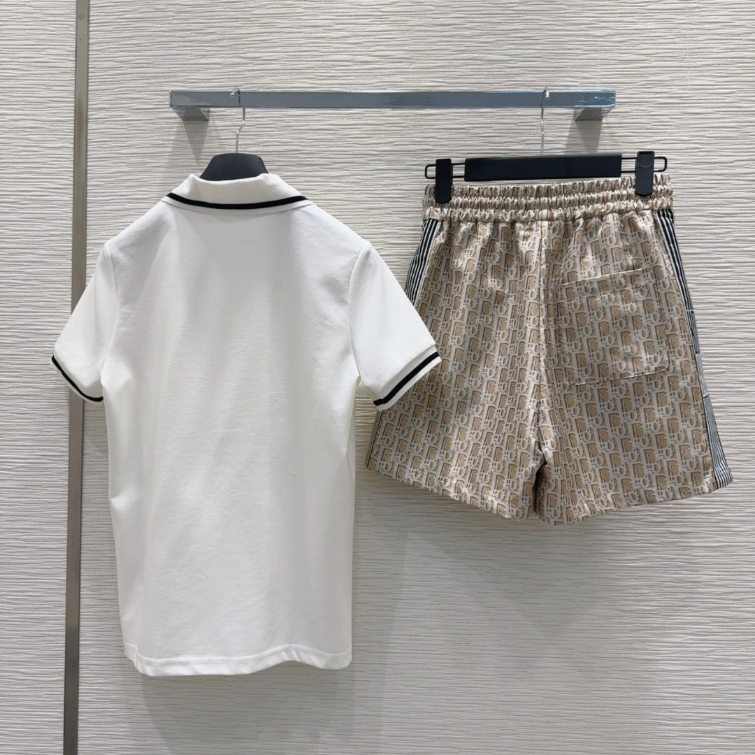 CD 25 Polo Shirt Set White Beige Cotton Polyester