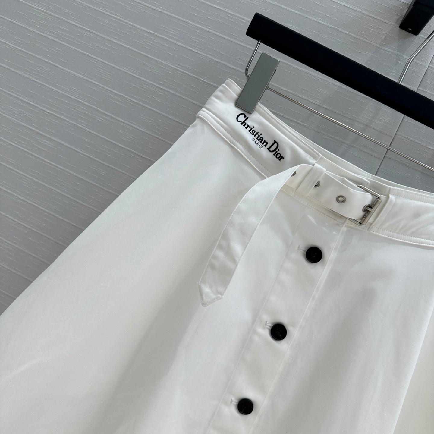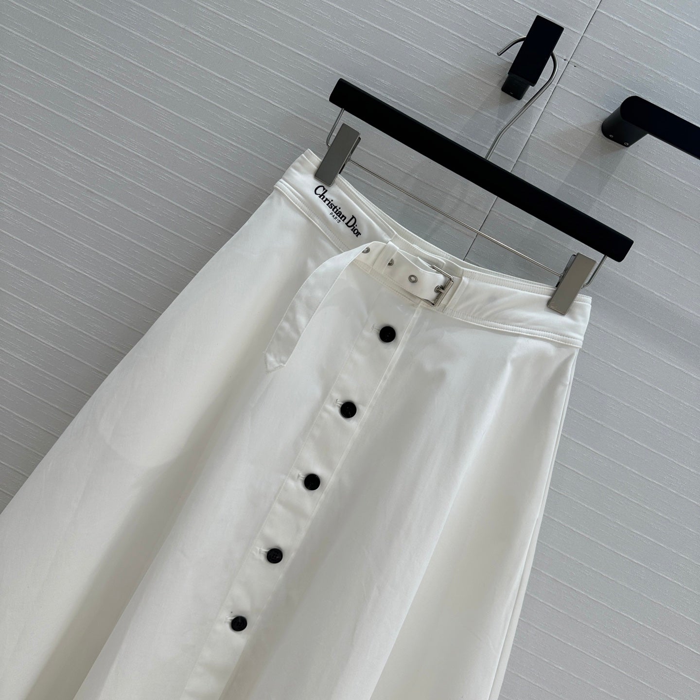 CD 25 Belted Single-breasted Long Skirt White Cotton