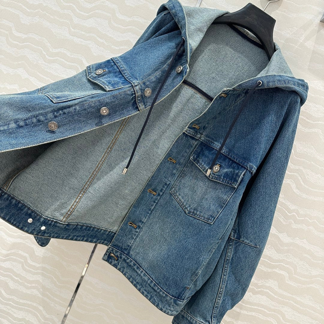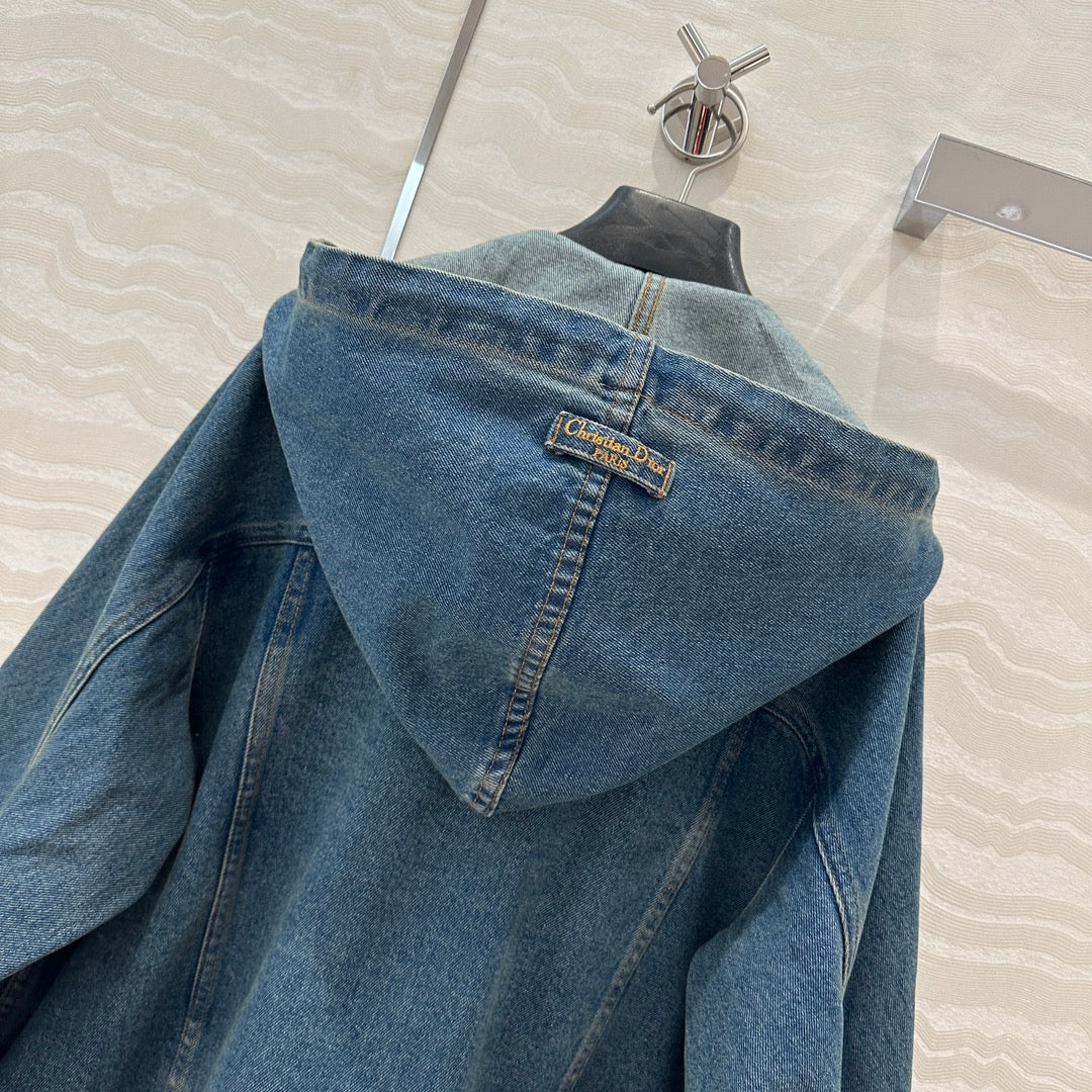 CD Hooded Denim Jacket With Monogram Lining White Beige Cotton