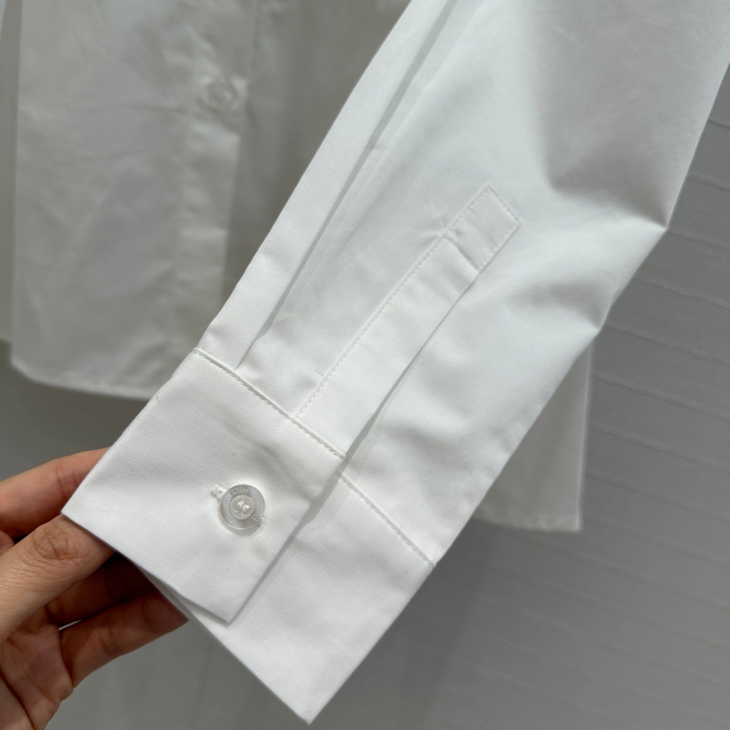 CD Stand-up Collar Long-sleeved Shirt Dress White Cotton