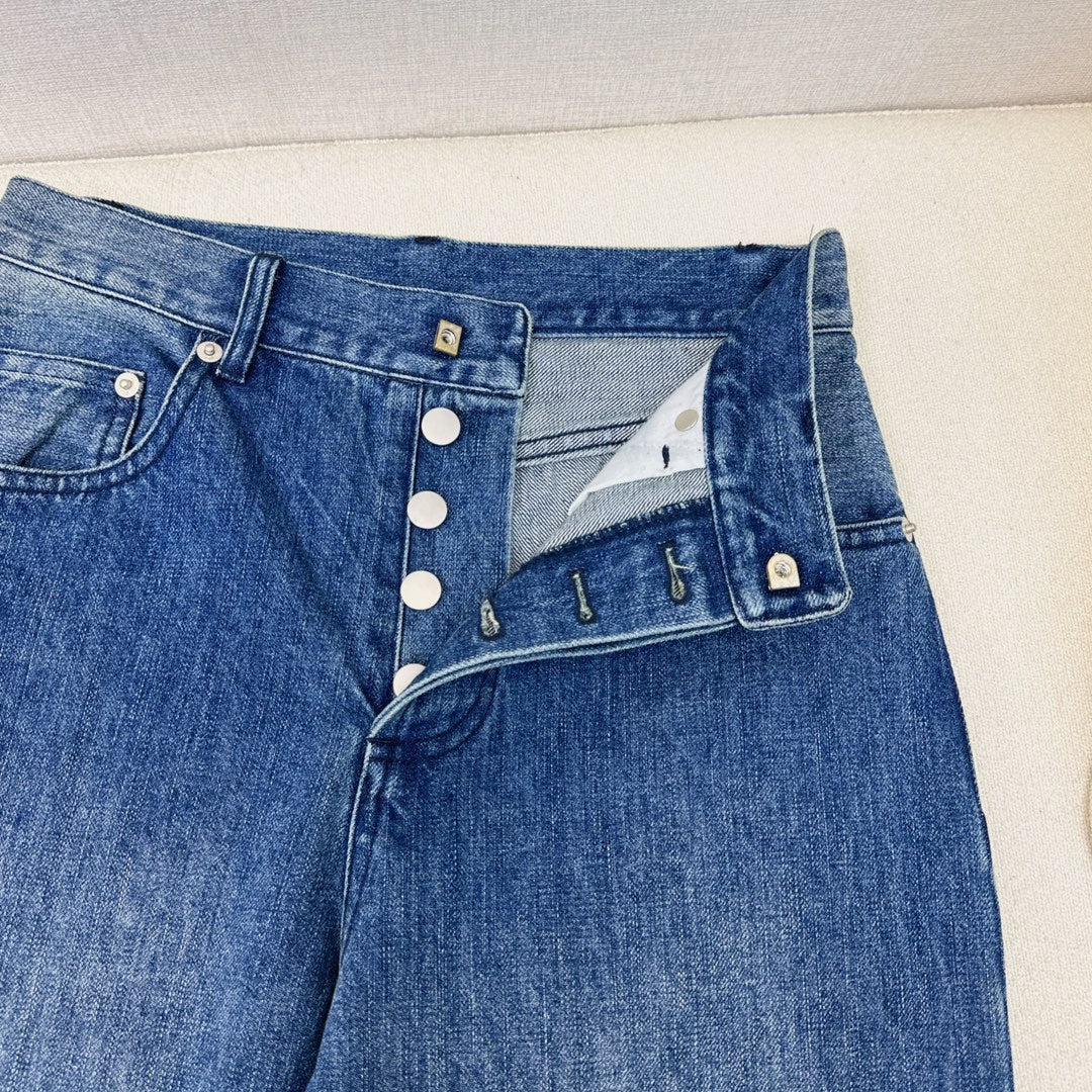 CD Denim Shorts With Old Flower Pattern Blue Cotton