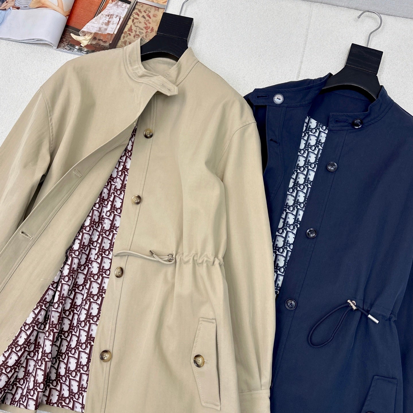 CD 25 Mid-length Trench Coat Blue and Beige Cotton Polyester 593395