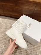 CD Ankle Boots White Quilted Windbreaker Fabric And Fleece