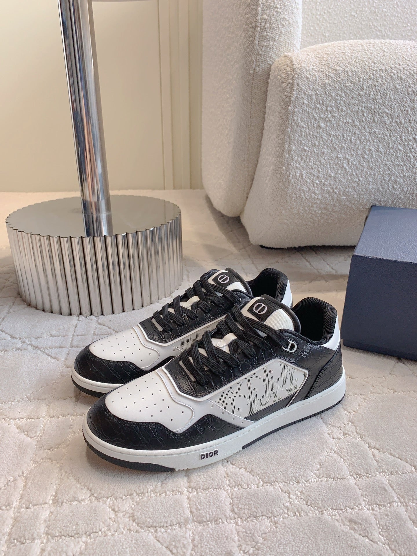 CD B27 Low-Top Sneaker White Black Print Wrinkled Calfskin